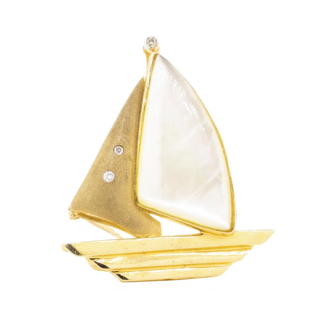 0.06 ctw Diamond and Mother of Pearl Boat Enhancer/Pin - 14KT Yellow Gold