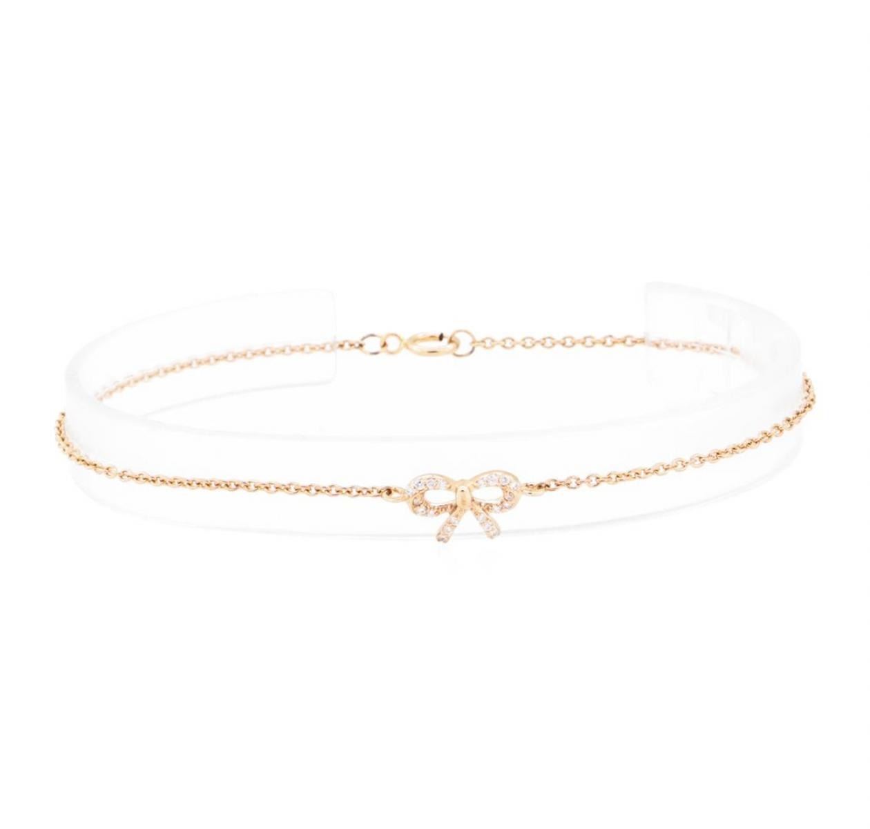 One bow-motif bracelet measuring approximately seven and a half inches in length featuring: 14KT rose gold weighing 1.7 grams containing diamonds weighing 0.10 ctw.