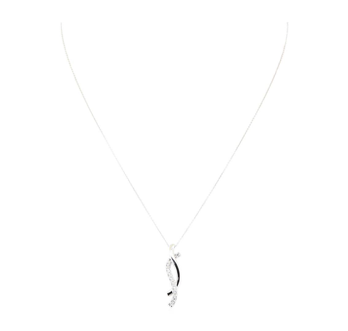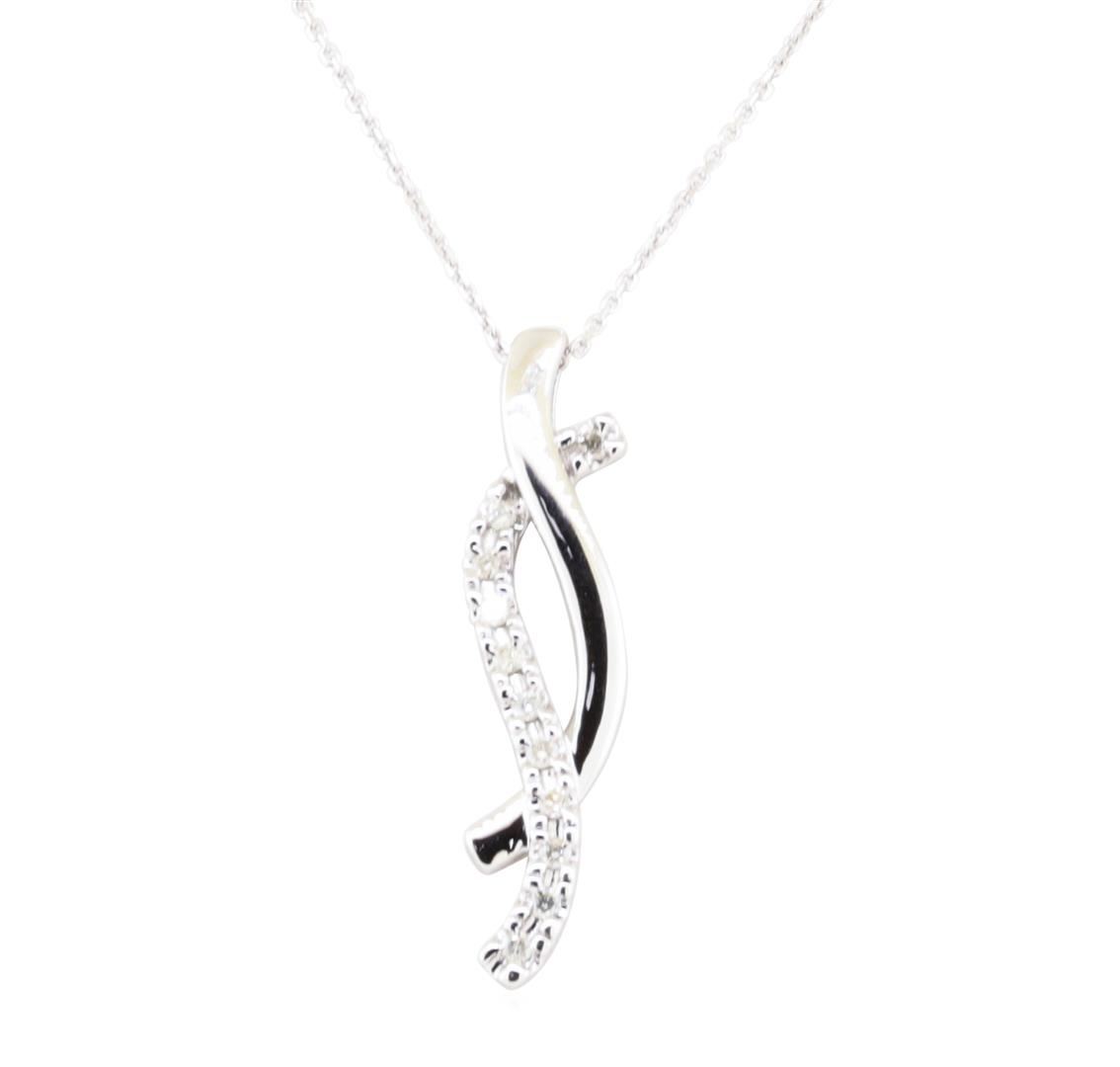 One double journey pendant with an attached eighteen inch long cable link chain featuring: 14KT white gold weighing 2.8 grams containing diamonds weighing 0.13ctw.