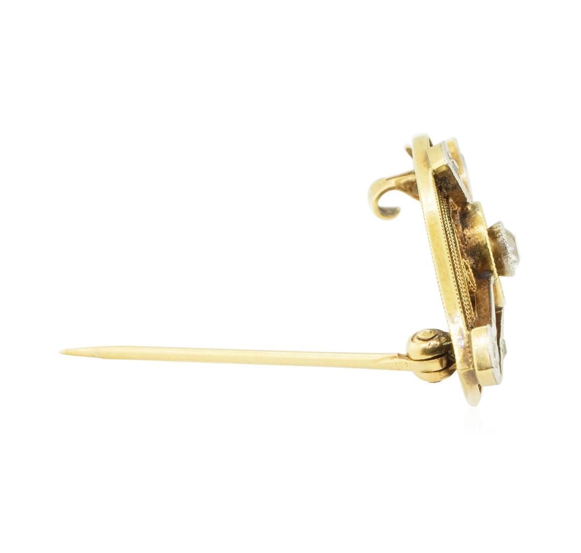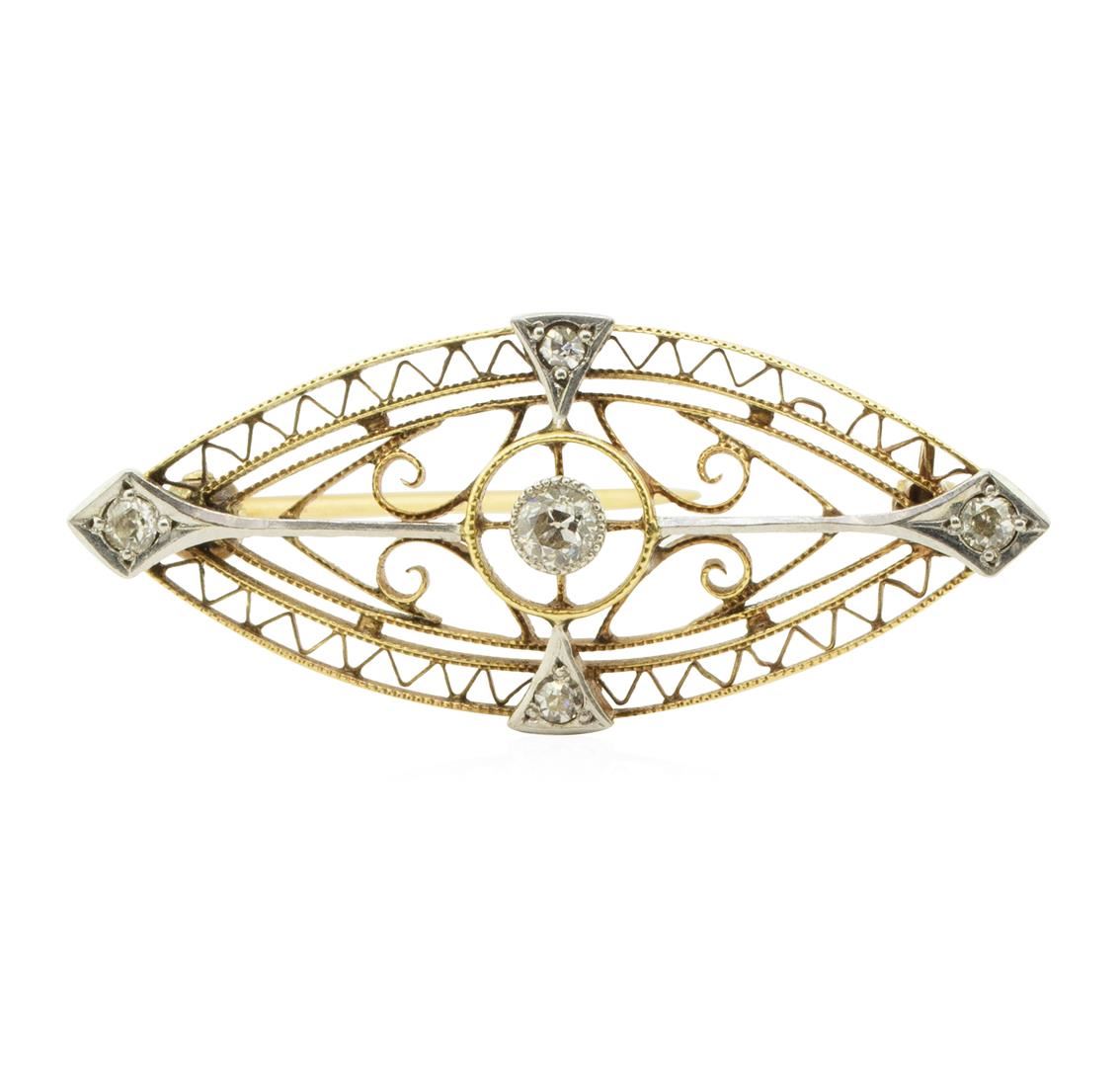 One vintage, hand made brooch featuring: 14KT yellow and white gold weighing 2.9 grams containing diamonds weighing 0.20ctw.