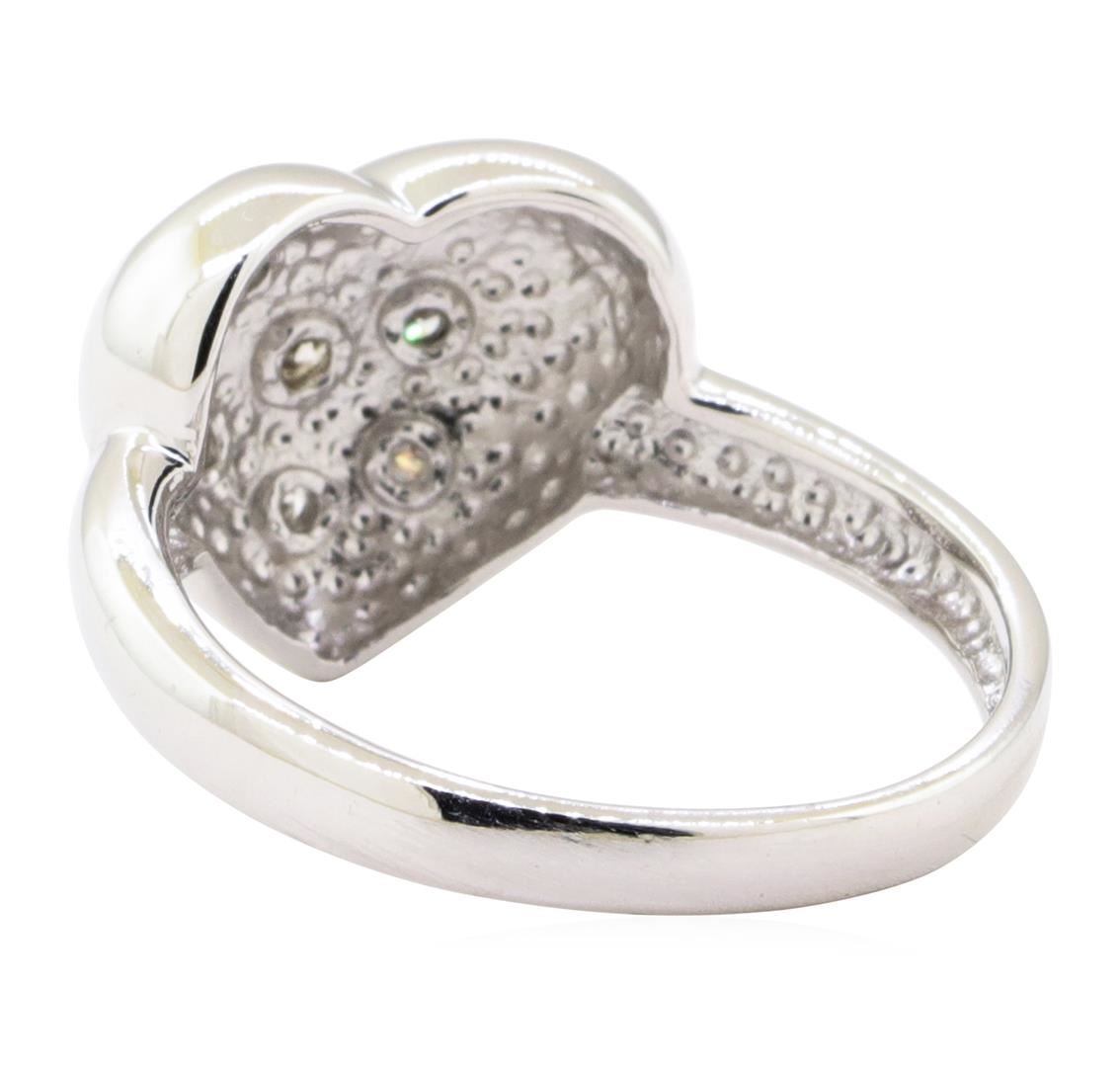 One ring with a heart shaped motif featuring: 14KT white gold weighing 4.2 grams containing diamonds weighing 0.20ctw.