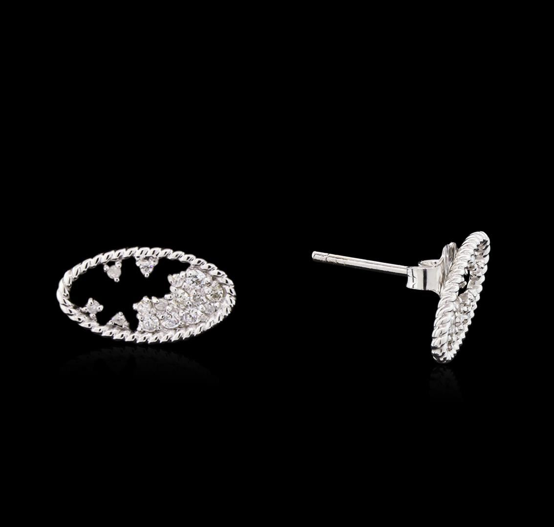 One pair of earrings featuring: 14KT white gold weighing 1.37 grams containing diamonds with a total weight of 0.27ct.