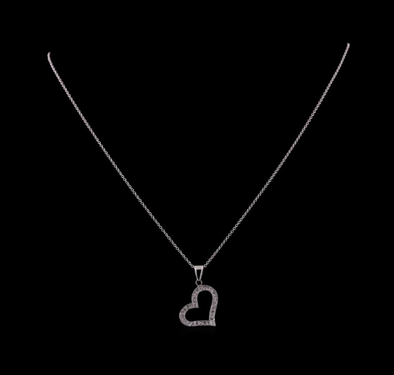 One heart pendant with chain featuring: 14KT white gold weighing 1.65 grams containing diamonds with a total weight of 0.30ct.
