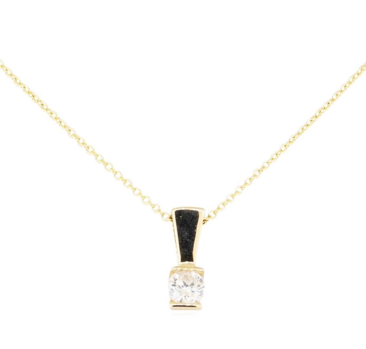 0.30 ctw Diamond Solitaire Pendant with Chain - 14KT Yellow Gold