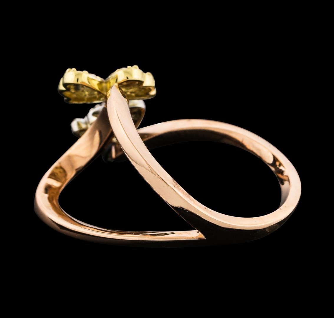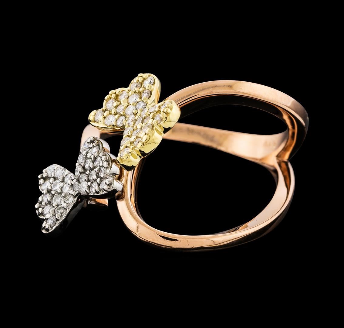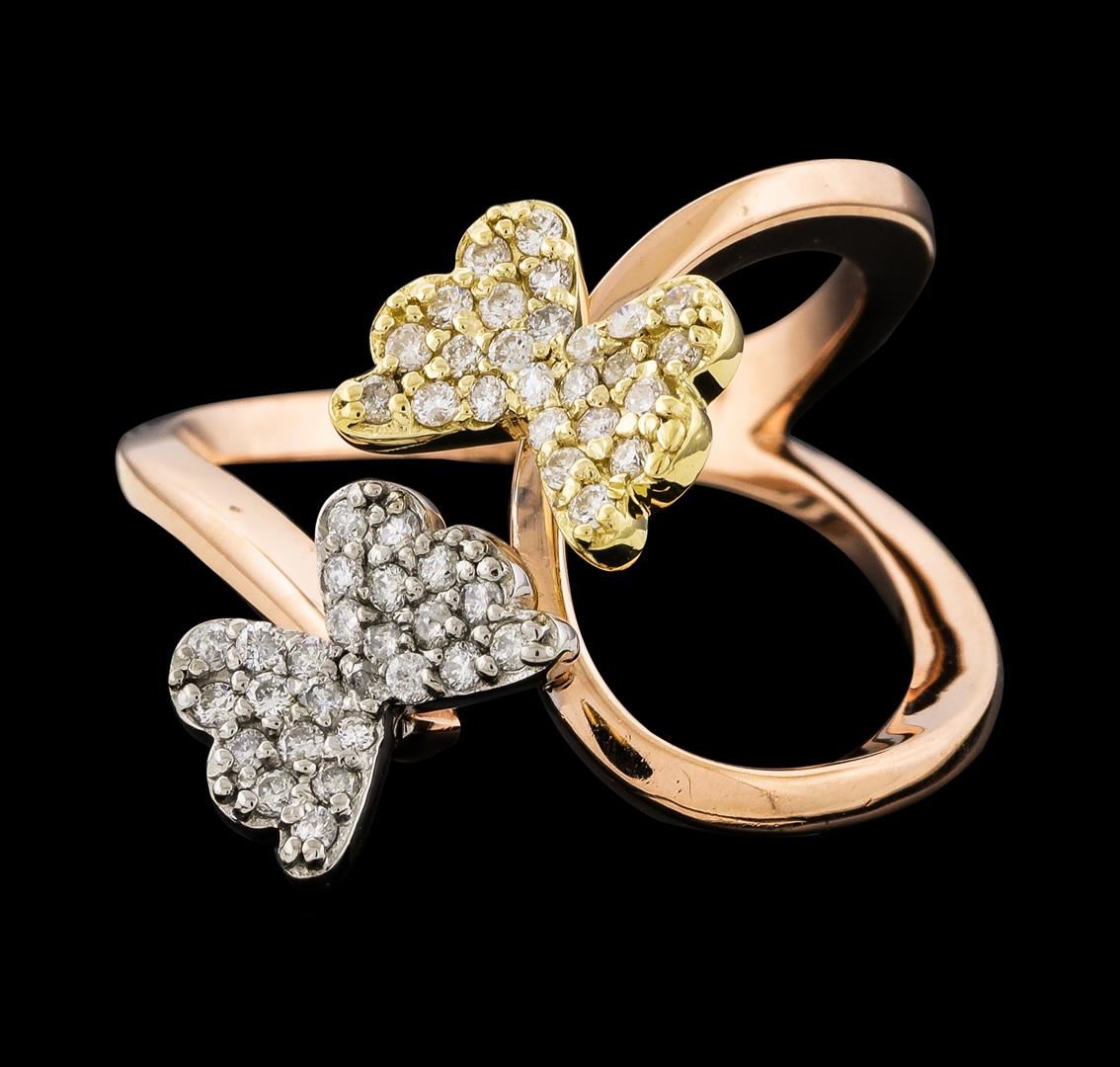 One Diamond Ring featuring: 14KT Tri-Tone Gold with a total weight of 4.30 grams and 50 Diamonds with a total weight of 0.32ctw.