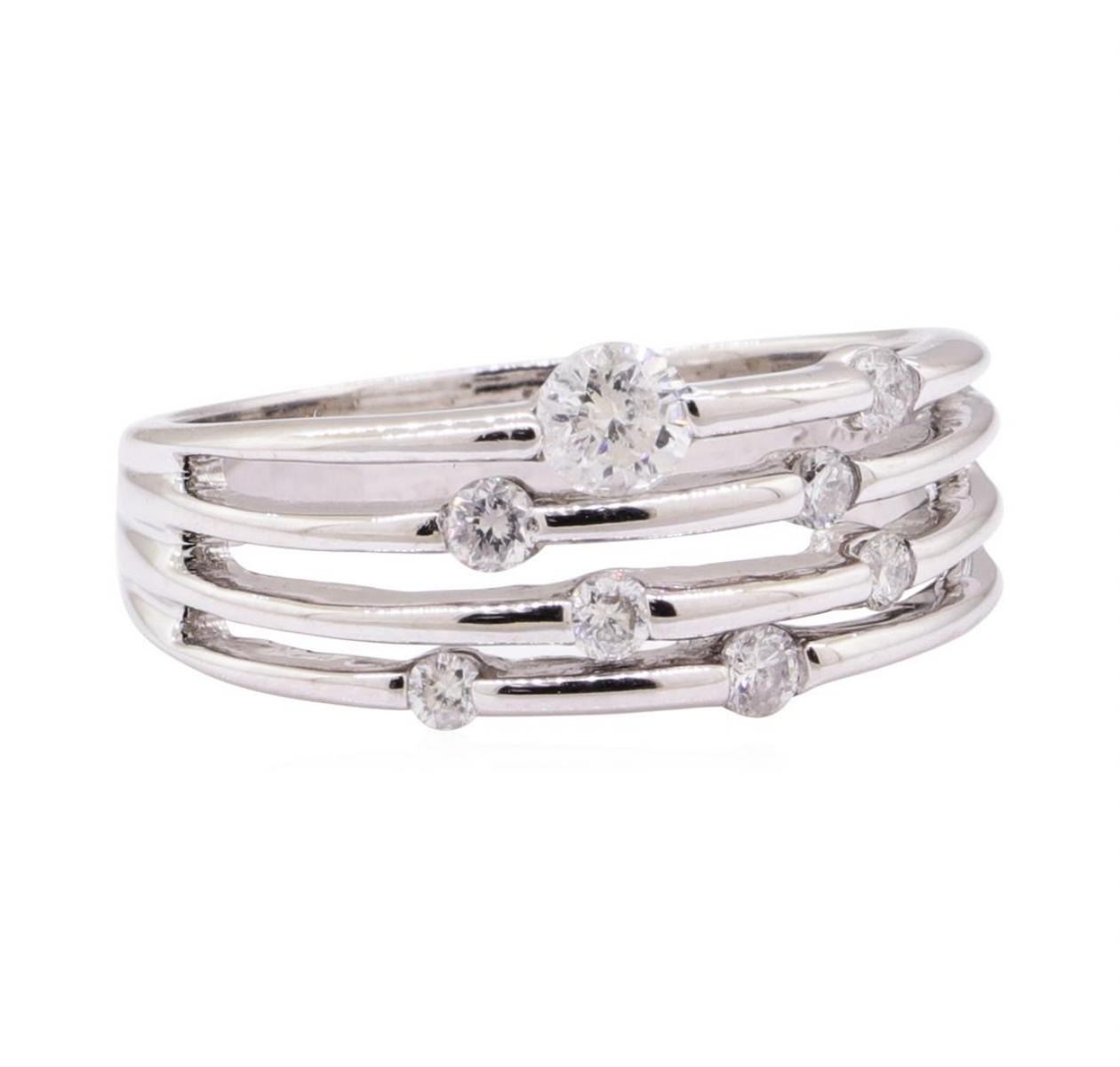 One band featuring: 14KT white gold weighing 5.0 grams containing diamonds weighing 0.36ctw. The ring has a five row motif.