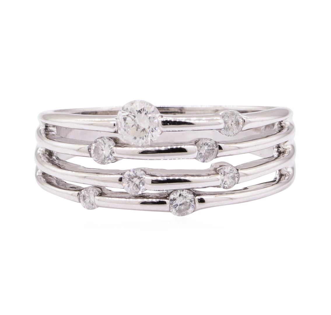 One band featuring: 14KT white gold weighing 5.0 grams containing diamonds weighing 0.36ctw. The ring has a five row motif.