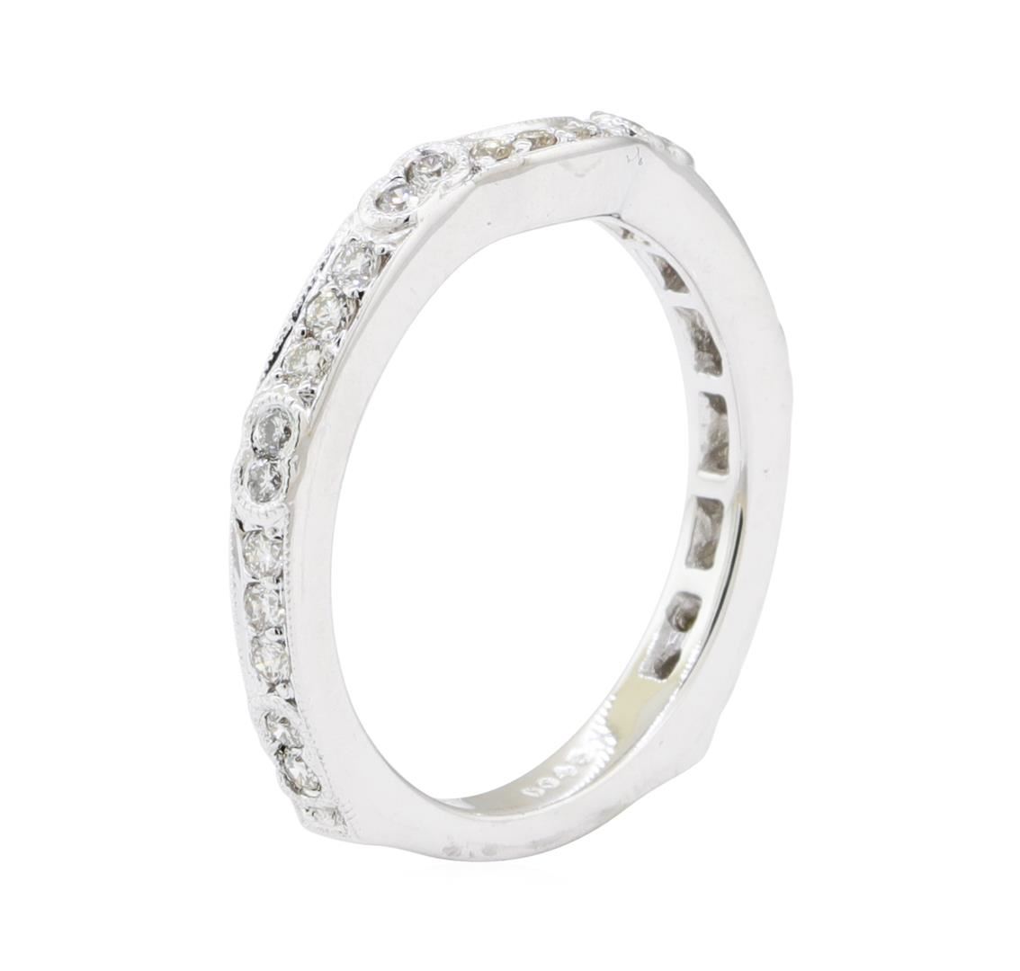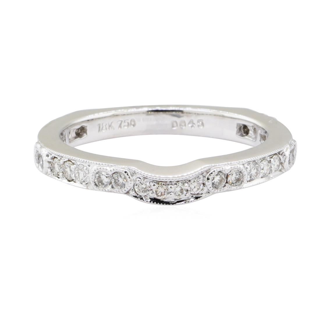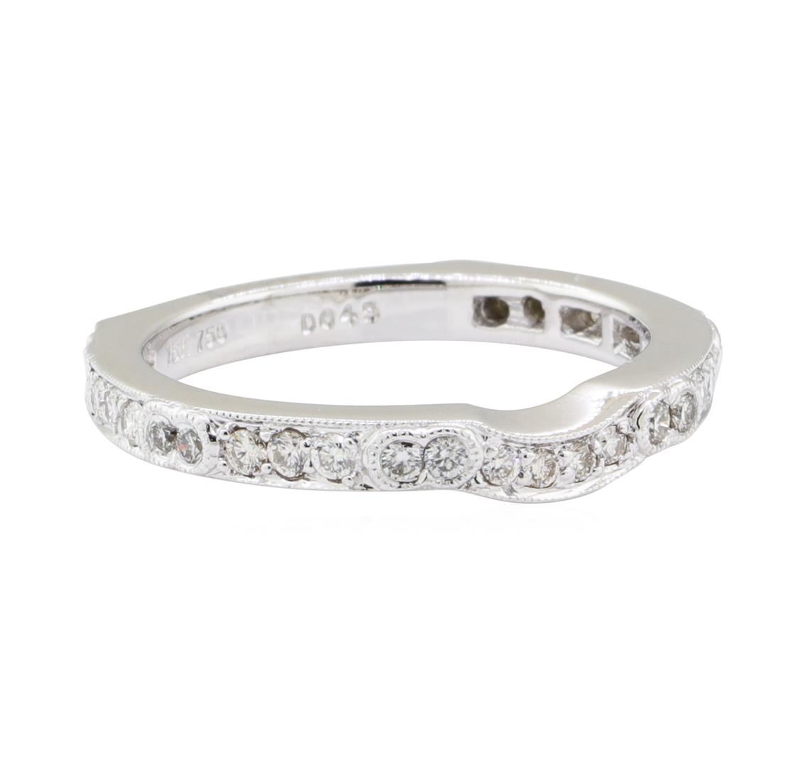 One euro shank ring with vintage milgrain detailing featuring: 18KT white gold weighing 4.0 grams containing diamonds weighing 0.40ctw.