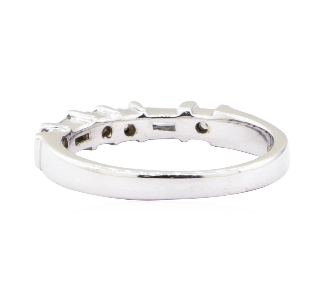 One straight-line ring featuring: 14KT white gold weighing 3.4 grams containing round and baguette diamonds weighing 0.40ctw.