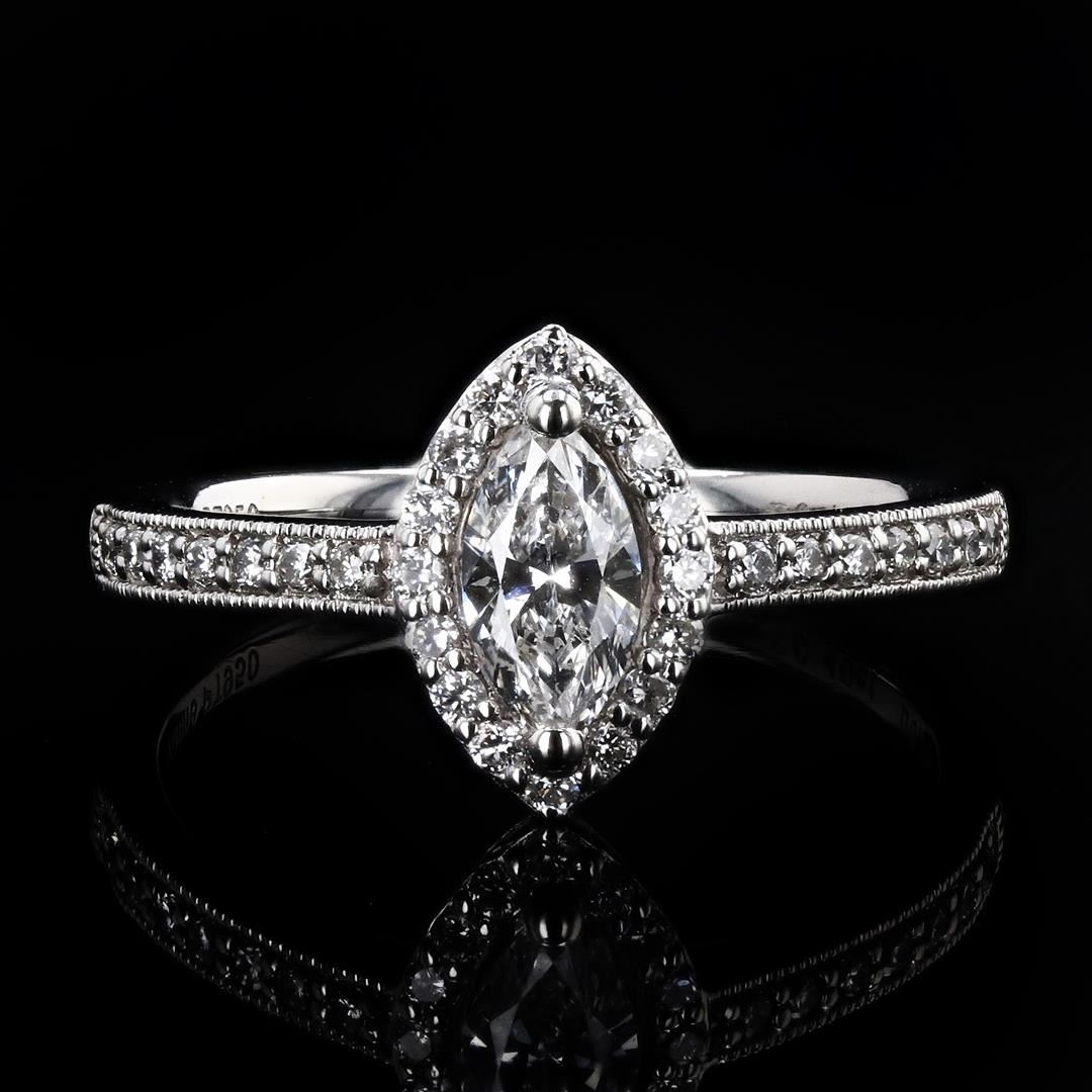 One electronically tested platinum ladies cast diamond unity ring. Condition is new, good workmanship. The featured diamond is set within a diamond bezel supported by diamond set shoulders, completed by a one and one-half millimeter wide band. Bright poli