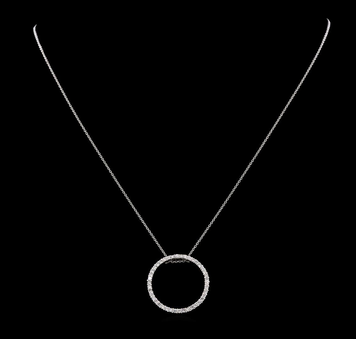 One lady's pendant with chain featuring: 18KT white gold weighing 4.7 grams containing diamonds weighing 0.50ctw. The pendant has a chain measuring approximately eighteen inches in length.
