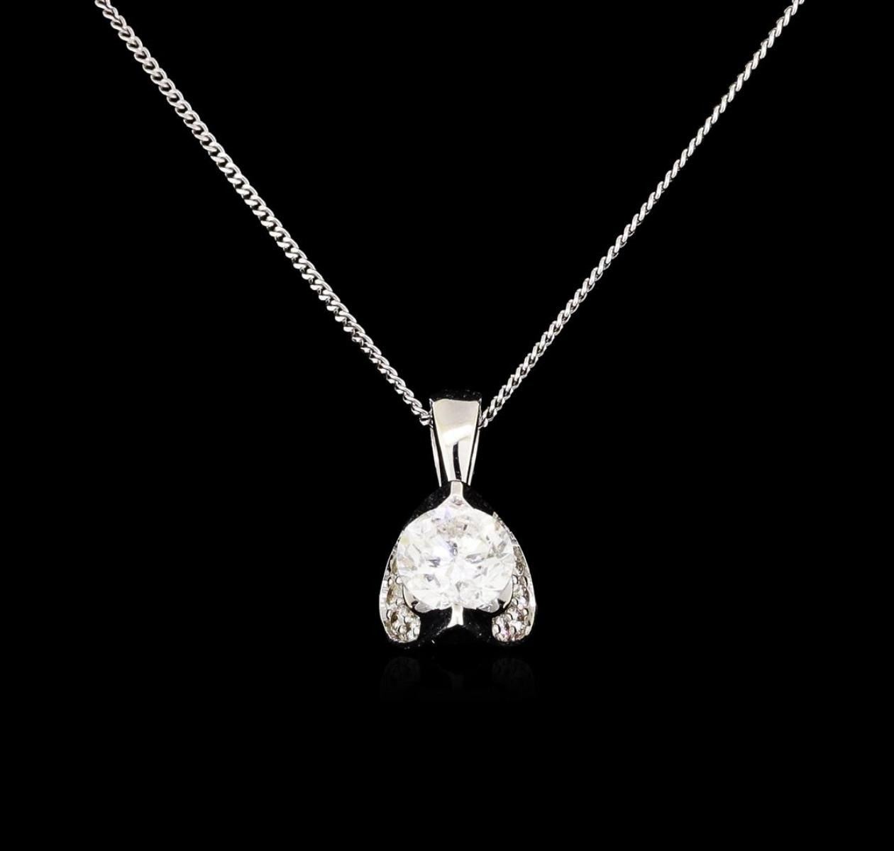 One electronically tested 14KT white gold lady's combination cast & assembled fashion pendant and chain 16.0' long, 1mm cable link with a spring ring clasp with a bright polish finish. Identified with markings of '14K'. Condition is new, good workmanship. GAS Appraised.