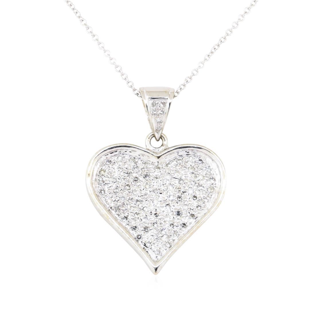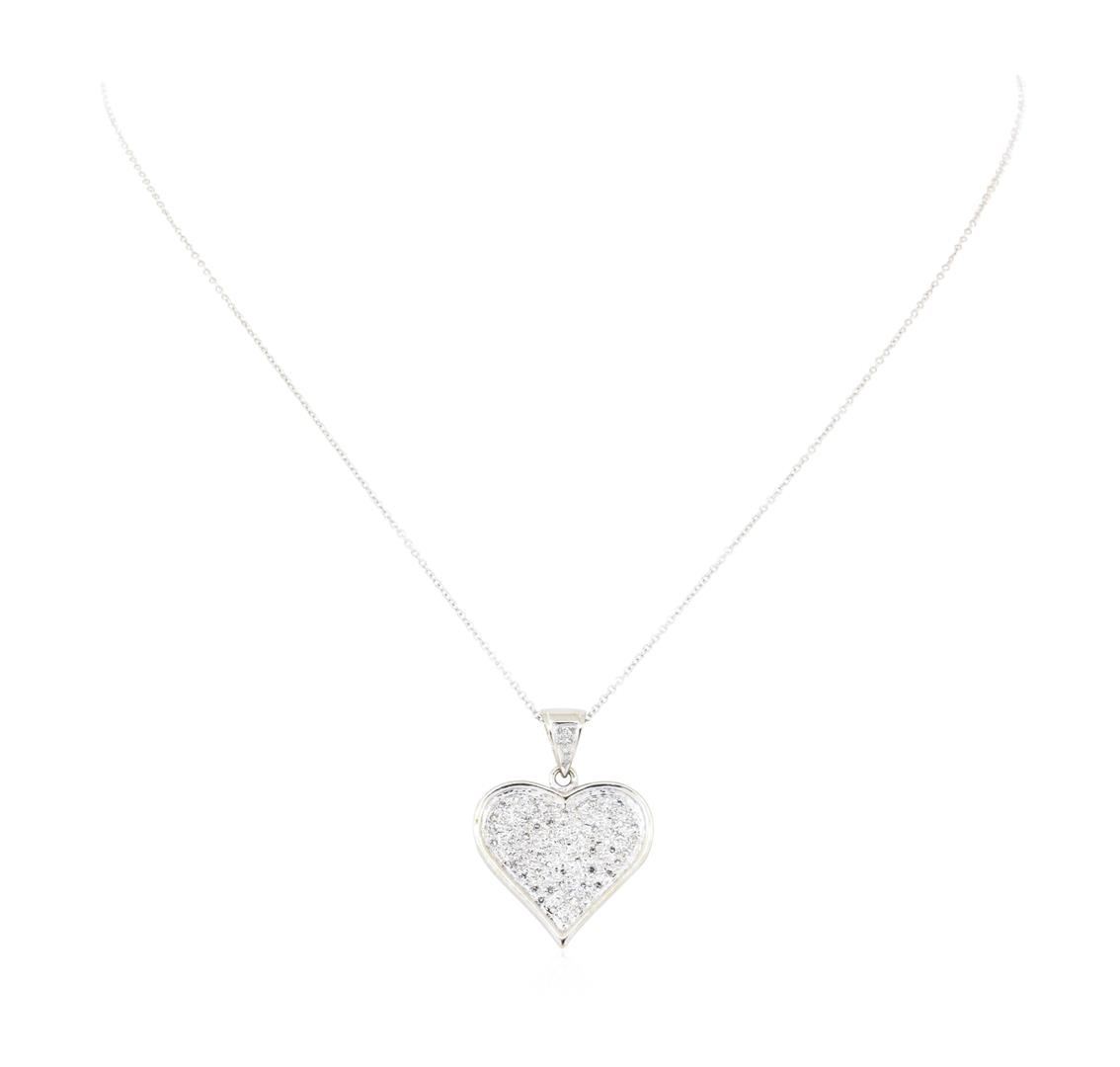 One electronically tested 14KT white gold lady's combination cast & assembled fashion heart shape pendant and chain 16.0' long, 1mm round cable link with a spring ring clasp with a bright polish finish. Identified with markings of '14K'. Condition is new, good workmanship. Containing: Eighty-Six prong set single cut diamonds, measuring 1.20 - 1.10 x 0.71mm (depth est.) approximate total weight of 86 Stones = 0.50ct. Graded in the setting. Color H - I Clarity SI-1 to I-1 Cut Good. Total Weight of Diamonds 0.50ct.. Total Weight of Pendant And Chain 5.70gm GAS Appraised at $2250.00. GAS Appraised.