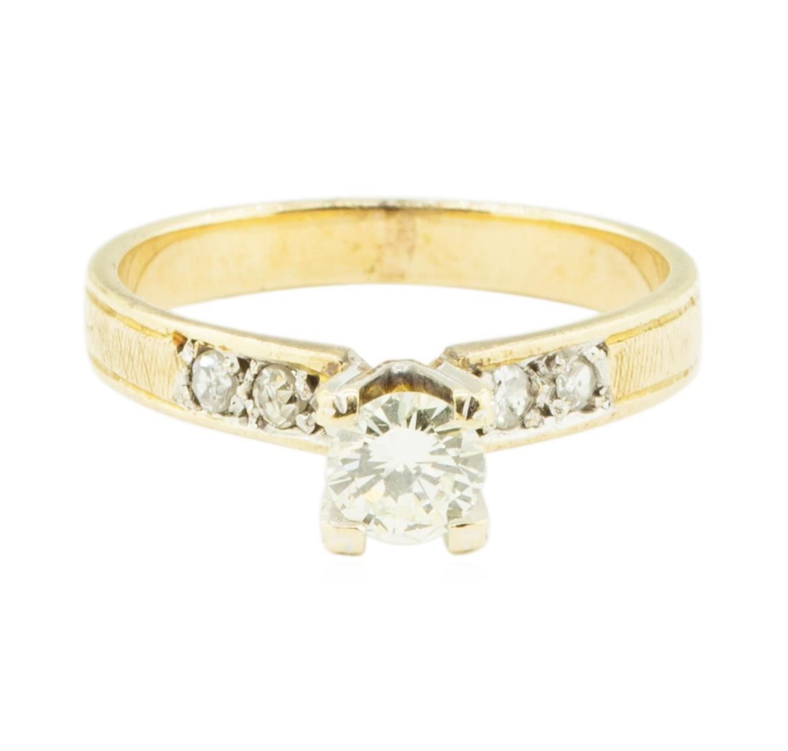 One ring featuring: 14KT yellow gold weighing 2.5 grams containing diamonds weighing 0.50ctw.