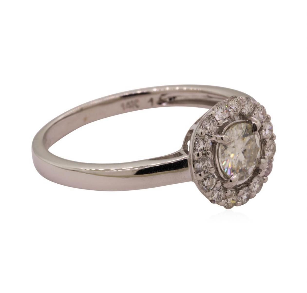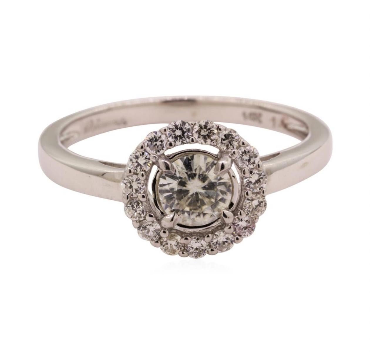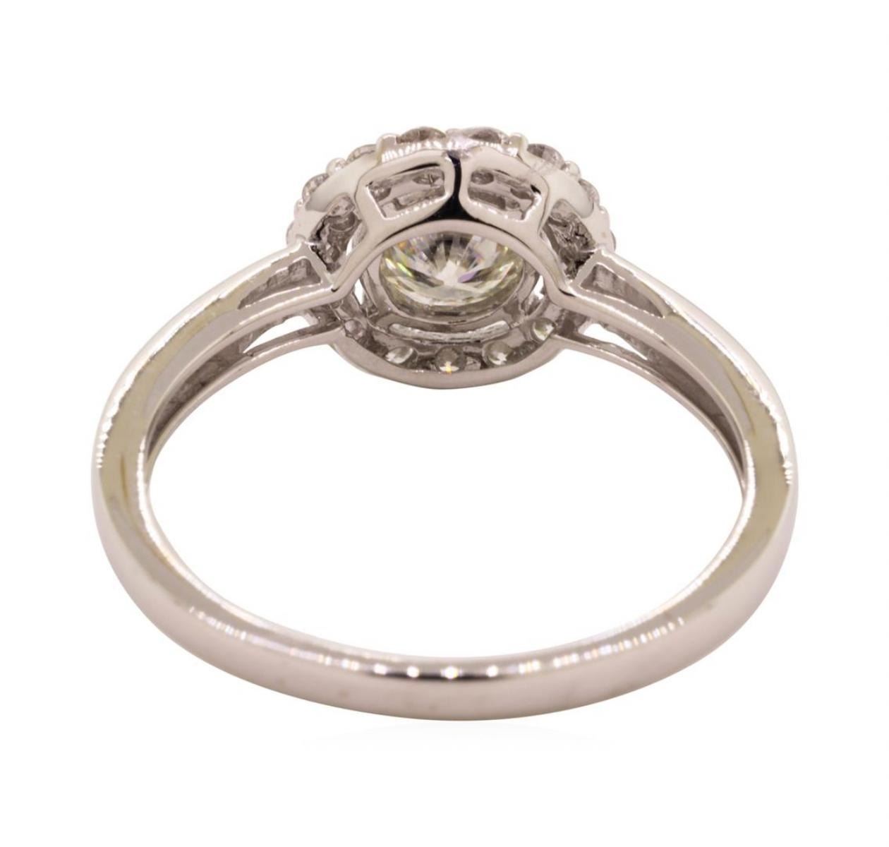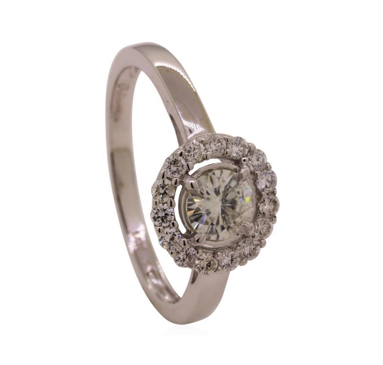 One lady's ring featuring: 14KT white gold weighing 2.4 grams containing moissanite weighing 0.50ctw.