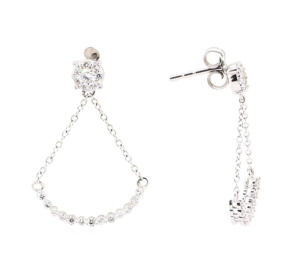 One pair of diamond dangle crescent earrings with a drop of approximately 25 mm featuring: 10KT white gold weighing 1.8 grams containing diamonds weighing 0.51ctw.