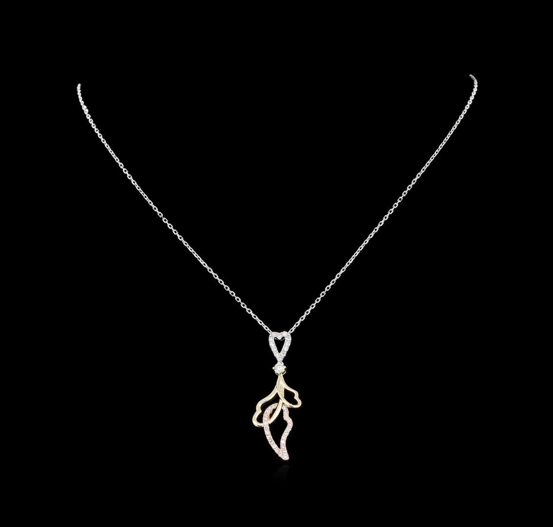 One necklace : 14KT white, yellow and rose gold weighing 5.66gm containing diamonds with a total weight of 0.53ctw.