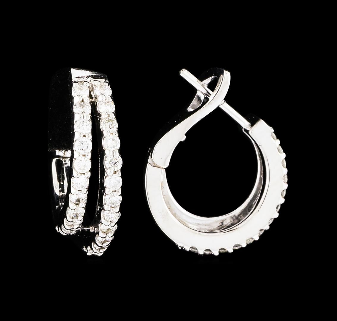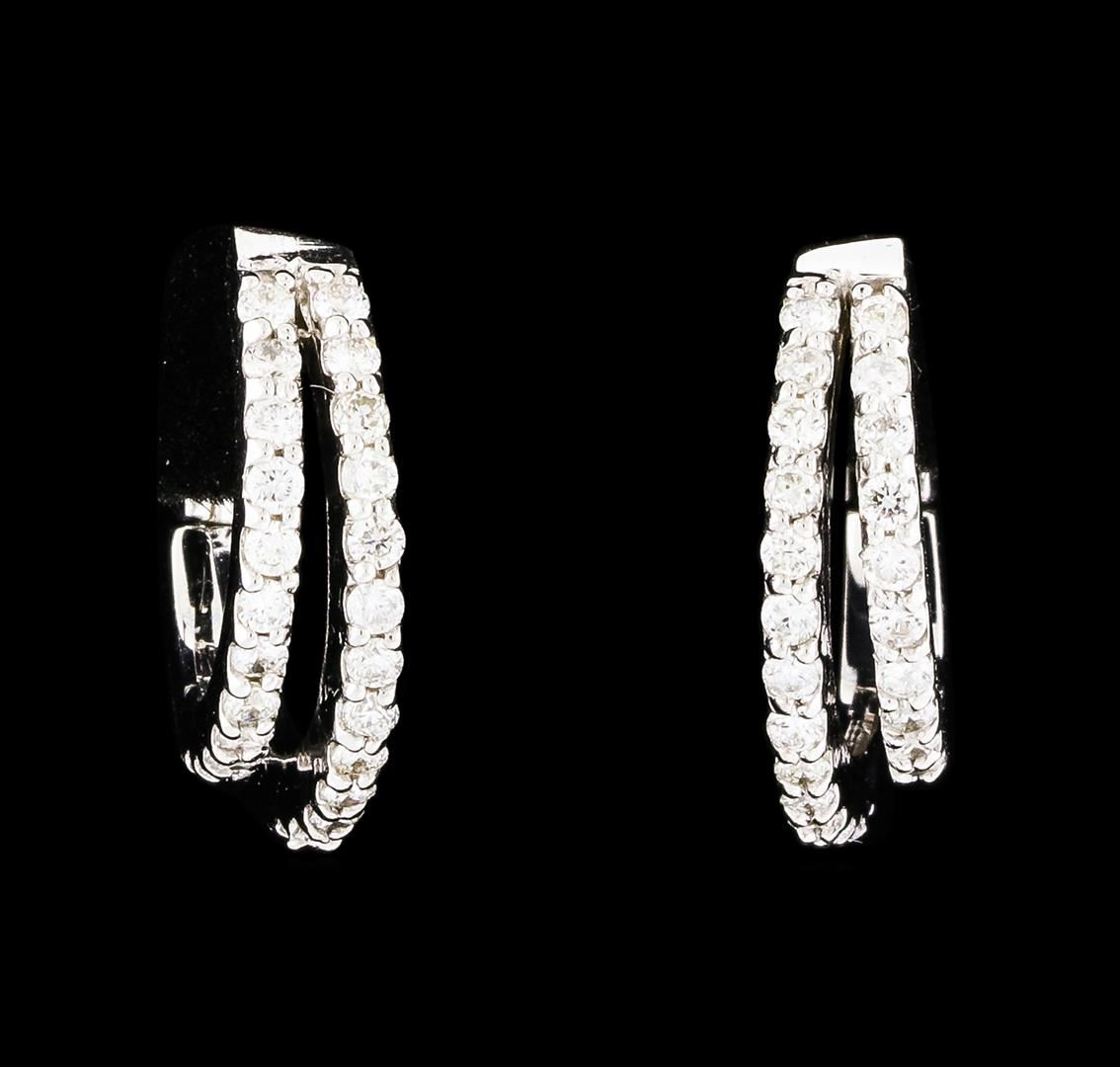 One pair of Diamond Earrings featuring: 14KT White Gold with a total weight of 4.68 grams and 50 Diamonds with a total weight of 0.60ctw.