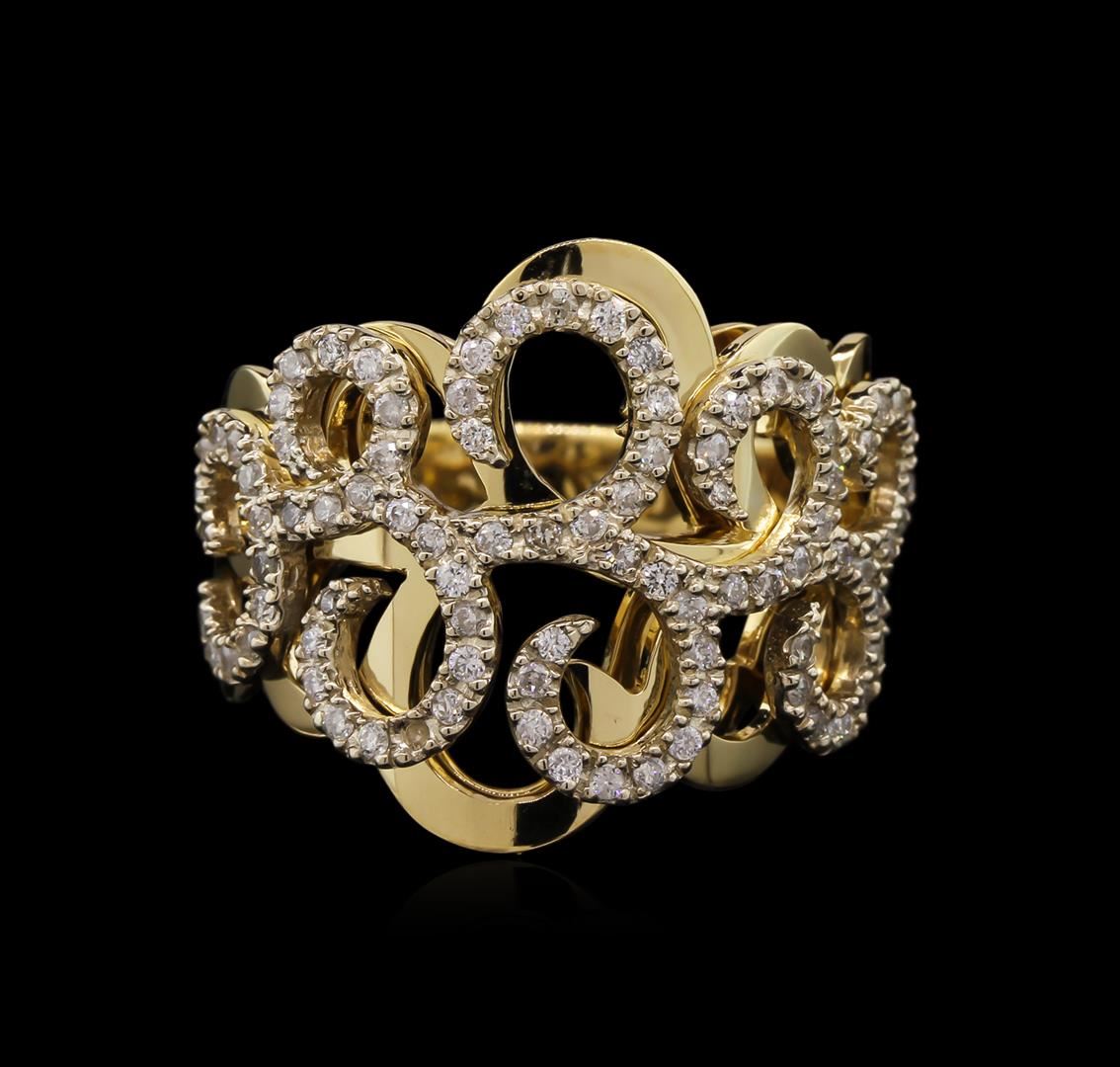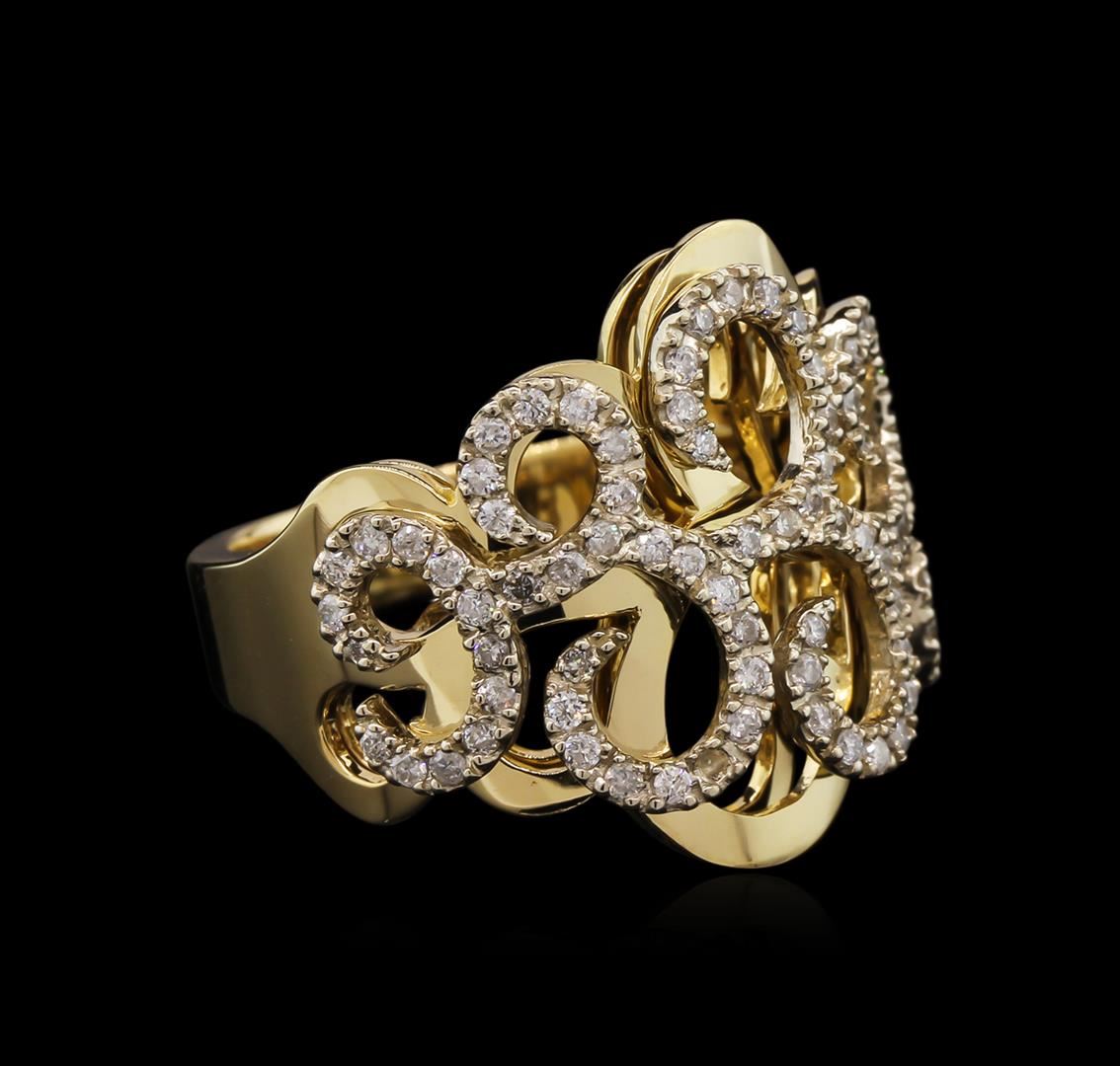 One ring featuring: 14KT yellow gold weighing 9.90 grams containing 87 diamonds with a total weight of 0.60ct.