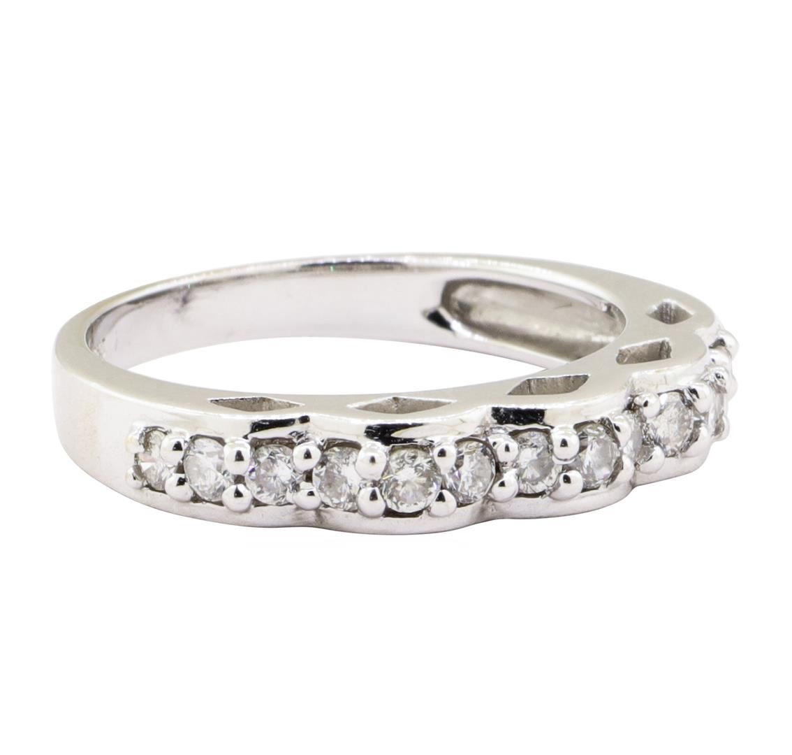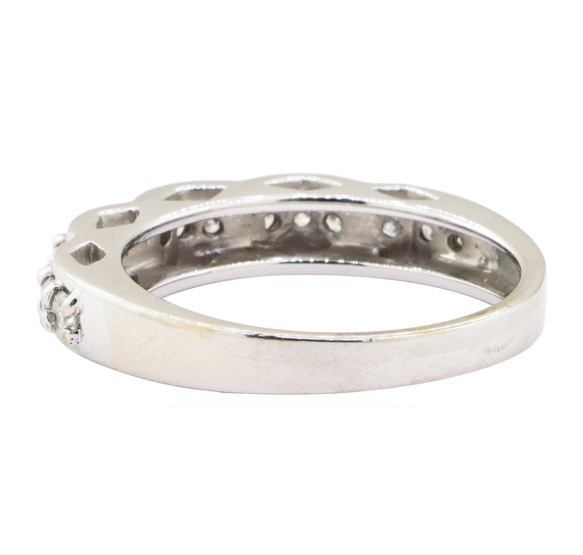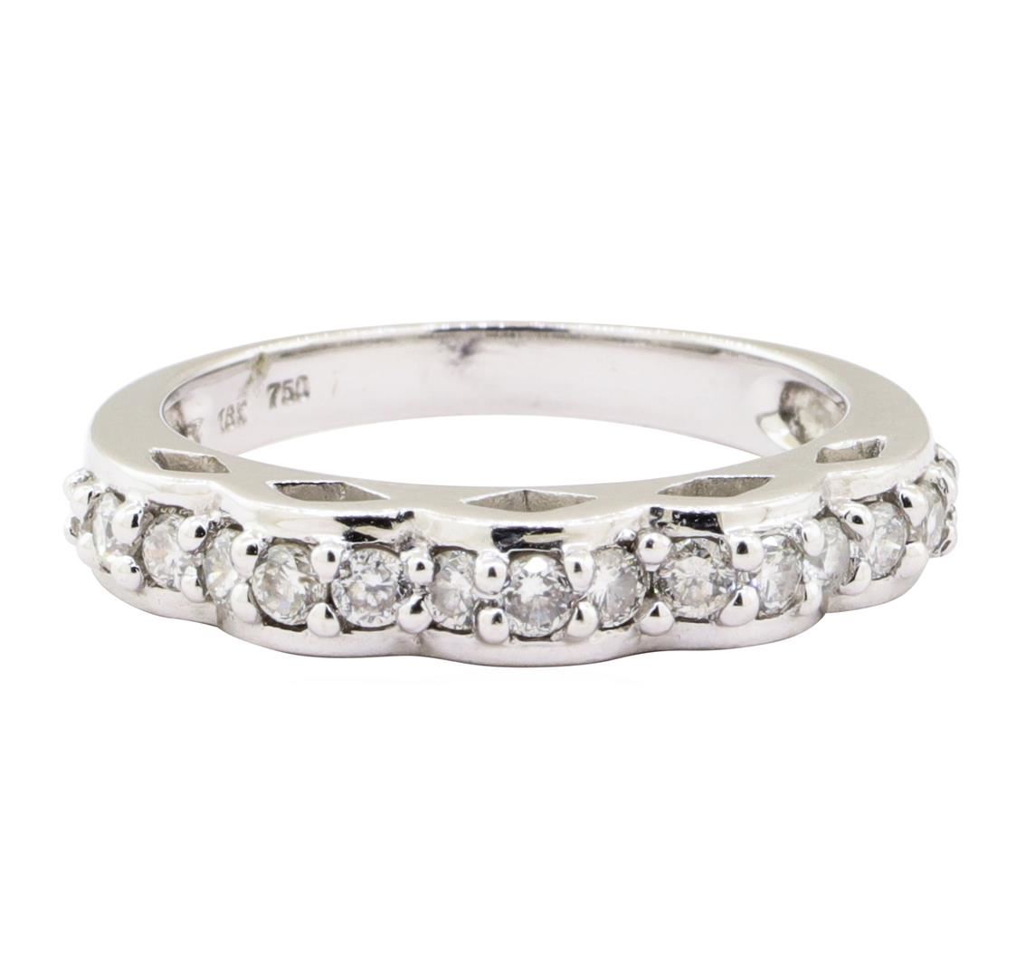 One straight line scalloped band featuring: 18KT white gold weighing 4.4 grams containing diamonds weighing 0.60ctw.