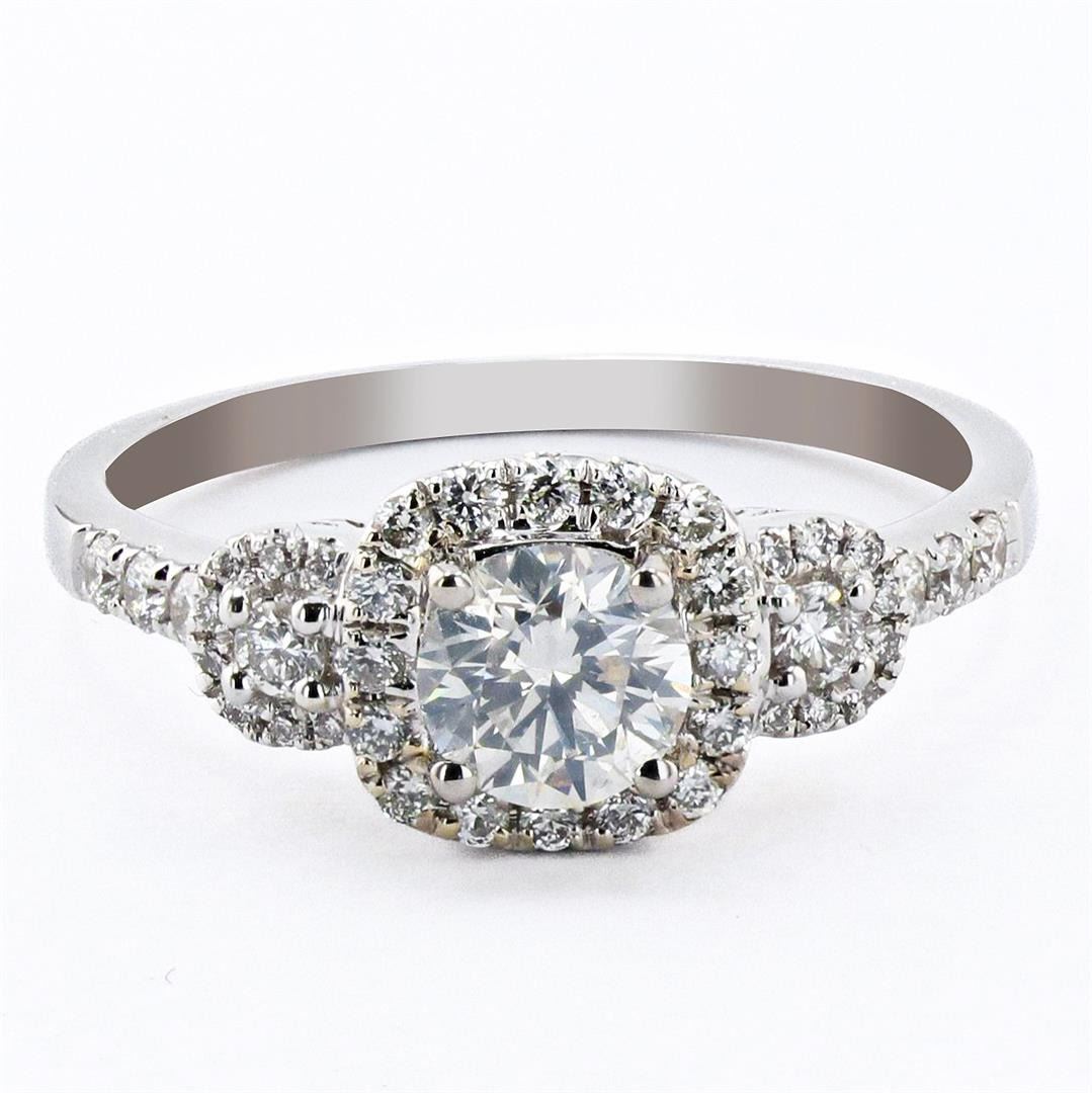 0.60ct SI2 CLARITY CENTER Diamond 18K White Gold Ring (0.94ctw Diamonds). One electronically tested 18KT white gold ladies cast diamond unity ring. The featured diamond is set within a diamond bezel & diamond set shoulders, supported by a lattice under gallery, completed by a one and one half millimeter wide band. Bright polish finish. Condition is new, good workmanship. Identified with markings of "18K" Trademark is HANA One prong set round brilliant cut diamond, measuring 5.24 - 5.20 x 3.38mm (depth est.), 5.00% GTCF approximate weight of 0.60ct. Naturally occurring internal & external characteristics are present. Graded in the setting Clarity: SI-2 Color Depth: 64.8% Table: 55.2% Polish: Good Symmetry: Good Forty prong set round brilliant cut diamonds (depth est.) approximate total weight of 40 Stones = 0.34ct. The clarity and color grade reflect the overall average for the group. Graded in the setting Clarity: SI-1 to I-1 Color: F - H Total Weight of Diamonds: 0.94ct Total Weight of Unity Ring: 3.10 gm