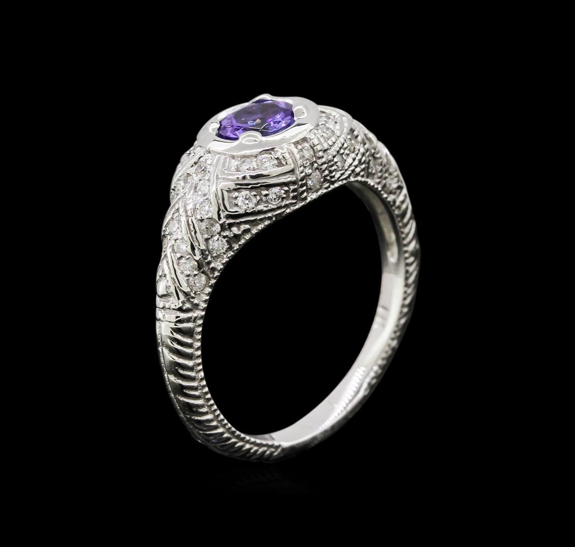One ring featuring: 14KT white gold weighing 4.85 grams containing one tanzanite with a total weight of 0.60ct and side diamonds with a total weight of 0.35ct.