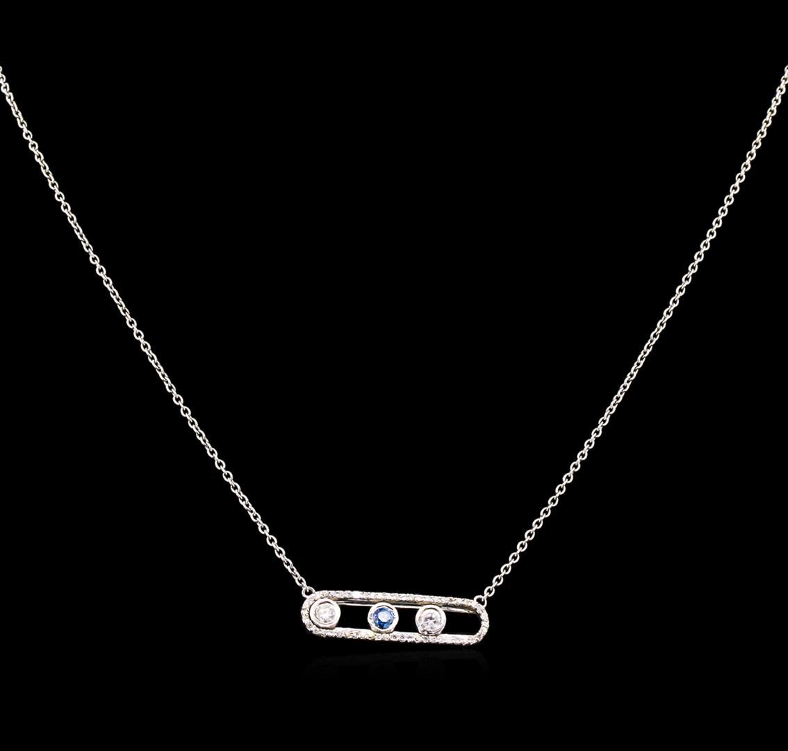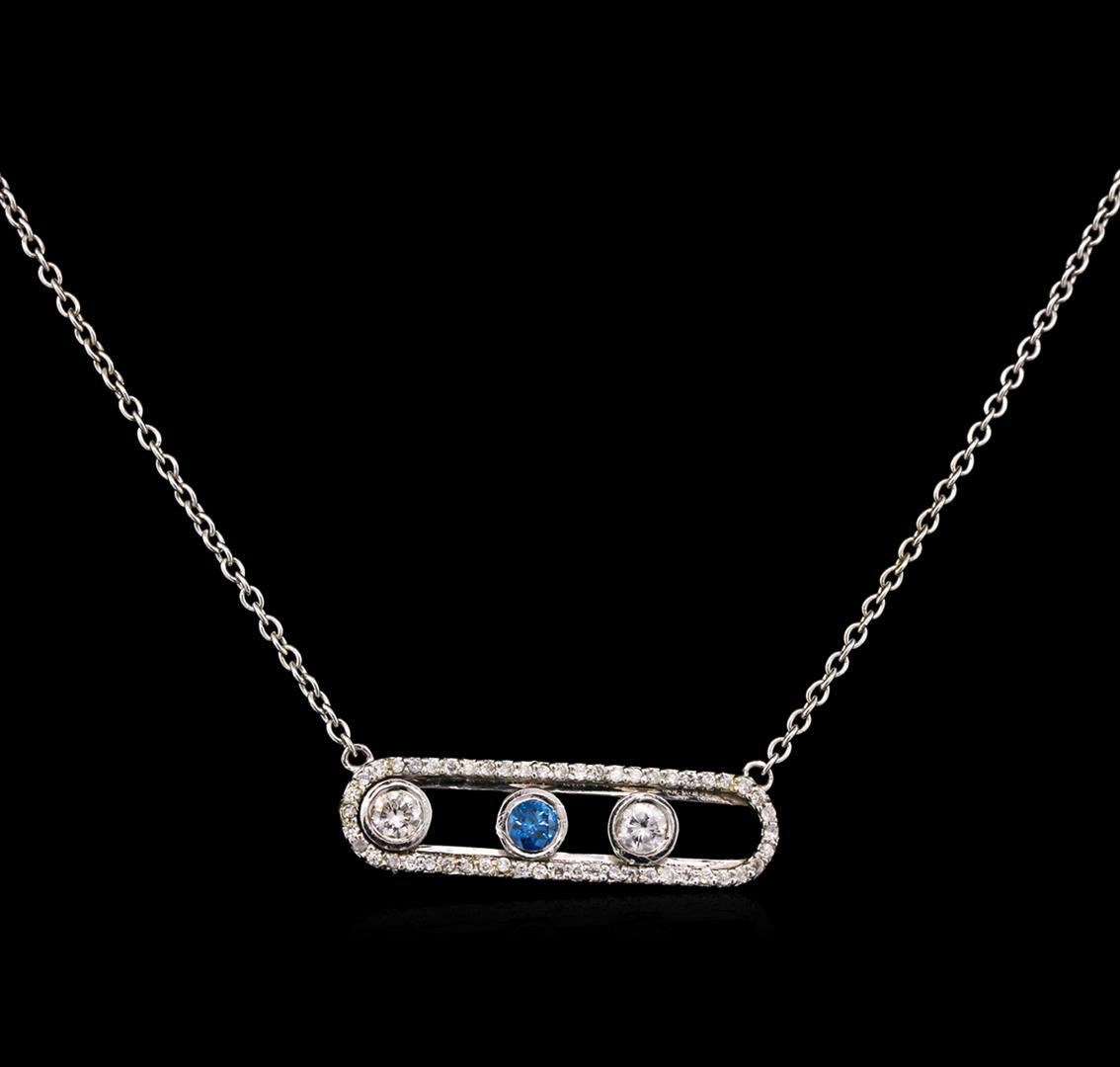 One necklace featuring: 14KT white gold weighing 6.85 grams containing one blue diamond with a total weight of 0.15ct and 54 diamonds with a total weight of 0.49ct.