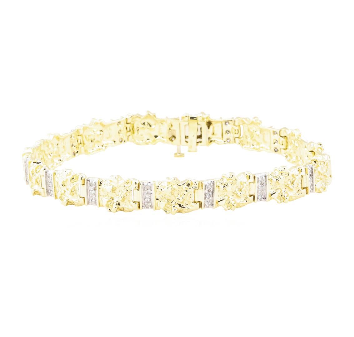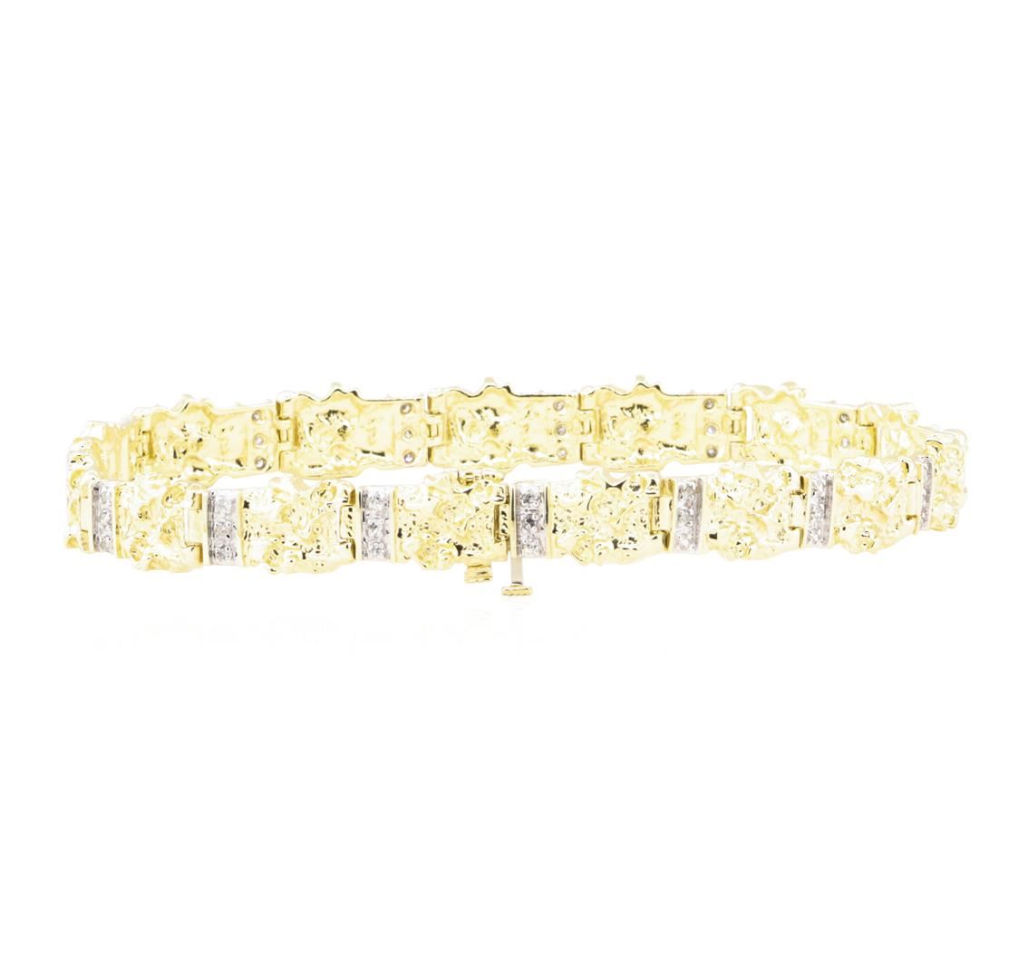 One men's nugget-style bracelet measuring approximately eight inches in length and 9mm in width featuring: 10KT yellow gold weighing 19.6 grams.