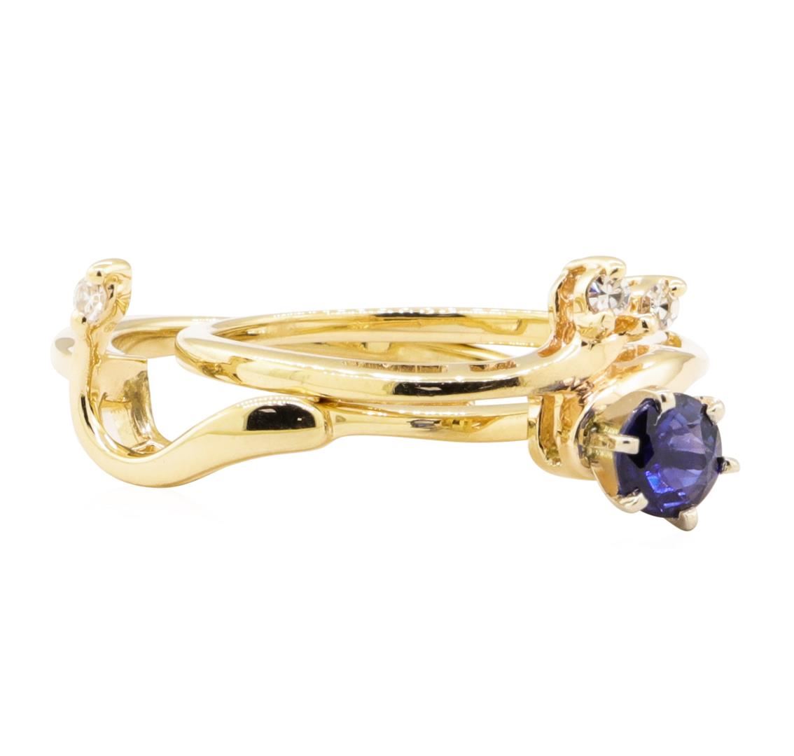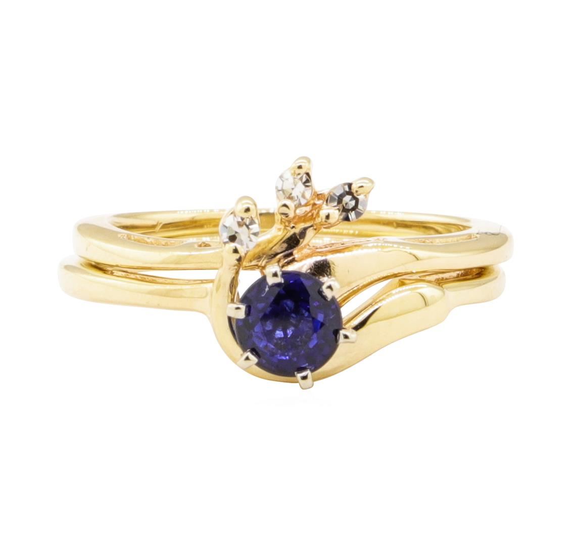 One ring featuring: 14KT yellow gold weighing 4.9 grams containing one blue sapphire weighing 0.61ct and diamonds weighing 0.06ctw.