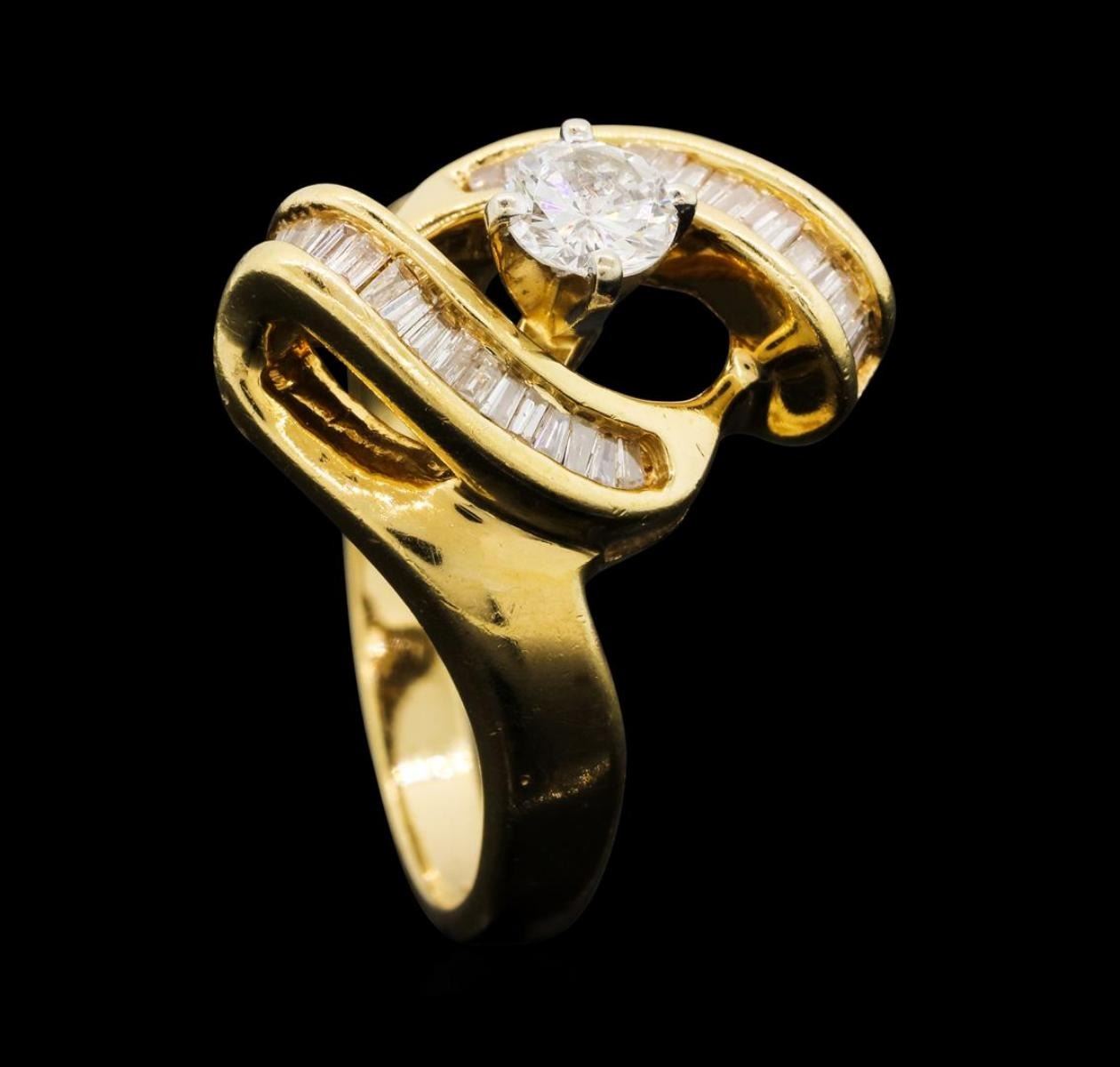 One electronically tested 14KT yellow gold lady's cast wedding ring with a bypass shank with a bright polish finish. The featured lady's ring has a shank measuring 2.75 millimeters wide. Identified with markings of '14K'. Condition is like new, good workm GAS Appraised at $3,250.00.
