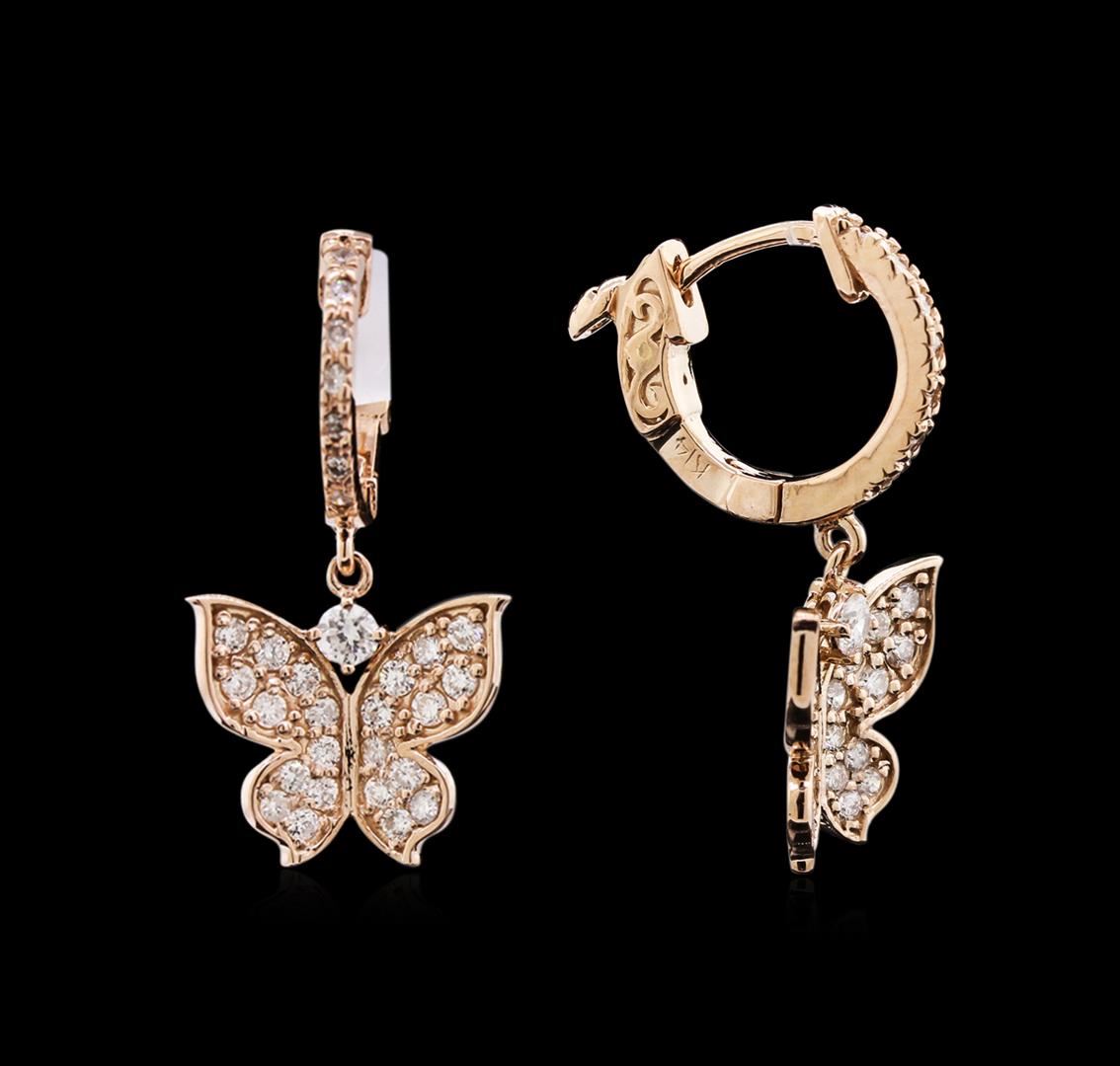 One pair of earrings: 14KT rose gold weighing 4.50 grams containing diamonds with a total weight of 0.73ct.