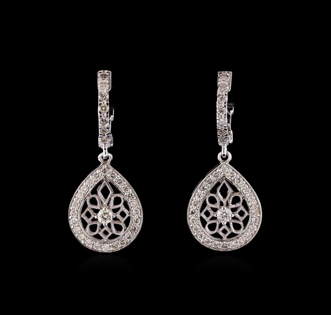 One pair of earrings featuring: 14KT white gold weighing 4.90 grams containing diamonds with a total weight of 0.74ctw.