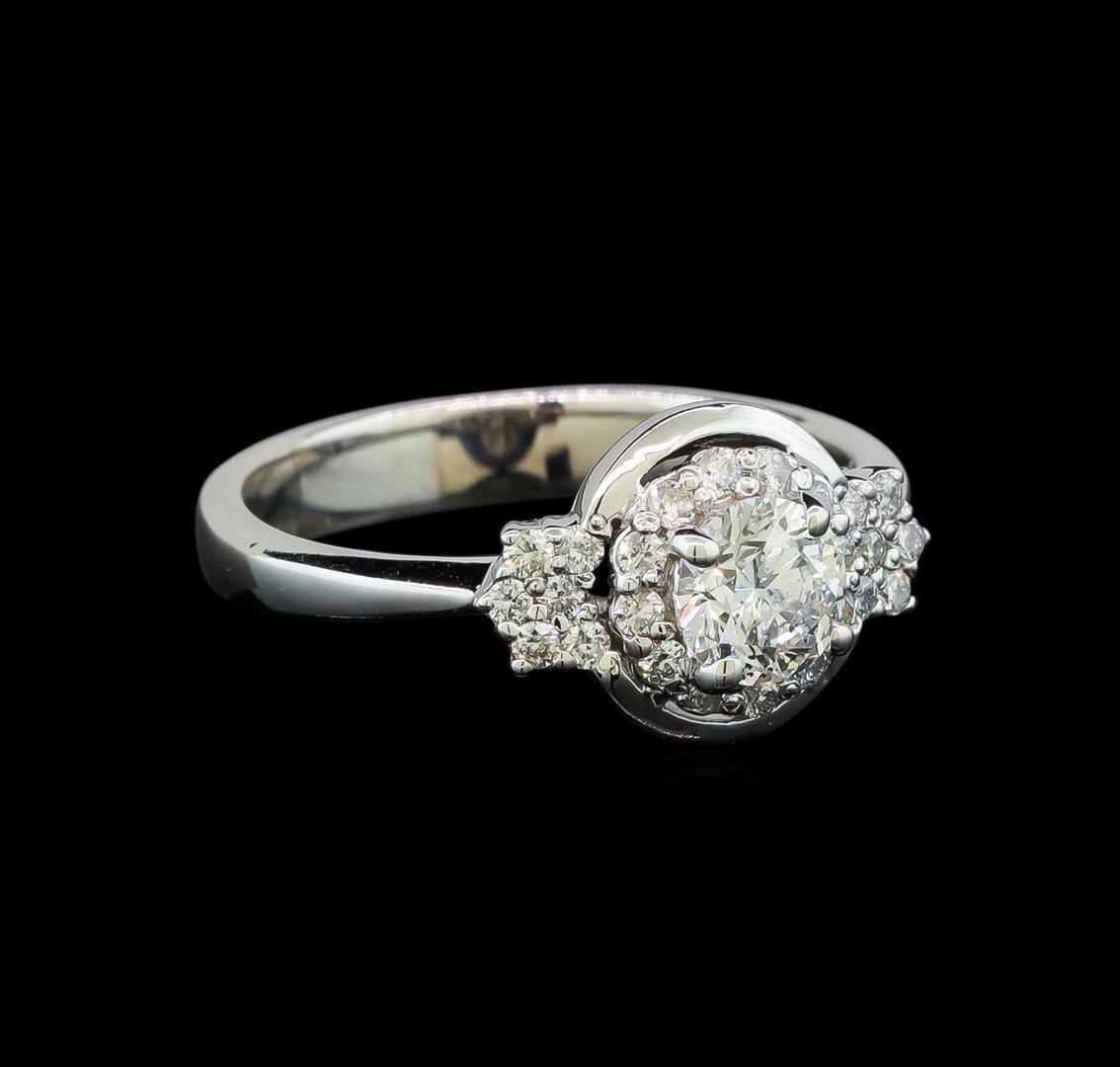 One electronically tested 14KT white gold lady's combination cast & assembled wedding ring with a bright polish finish. The featured lady's ring has a shank measuring 3.13 millimeters wide. Identified with markings of '14K'. Condition is new, good workmanship. Containing: One prong set round brilliant cut diamond, measuring 5.06 - 5.04 x 3.18mm (depth est.) approximate weight of 0.53ct. Graded in the setting. Clarity SI-3. Color: H Cut Good Twenty-Four prong set round brilliant cut diamonds, measuring 1.40 - 1.35 x 0.86mm (depth est.) approximate total weight of 24 Stones = 0.24ct. Graded in the setting. Clarity SI-1 to I-1. Color: G - I Cut Good. Total Weight of Diamonds 0.77ct.. Total Weight of Ring 3.30gm. GAS Appraised.