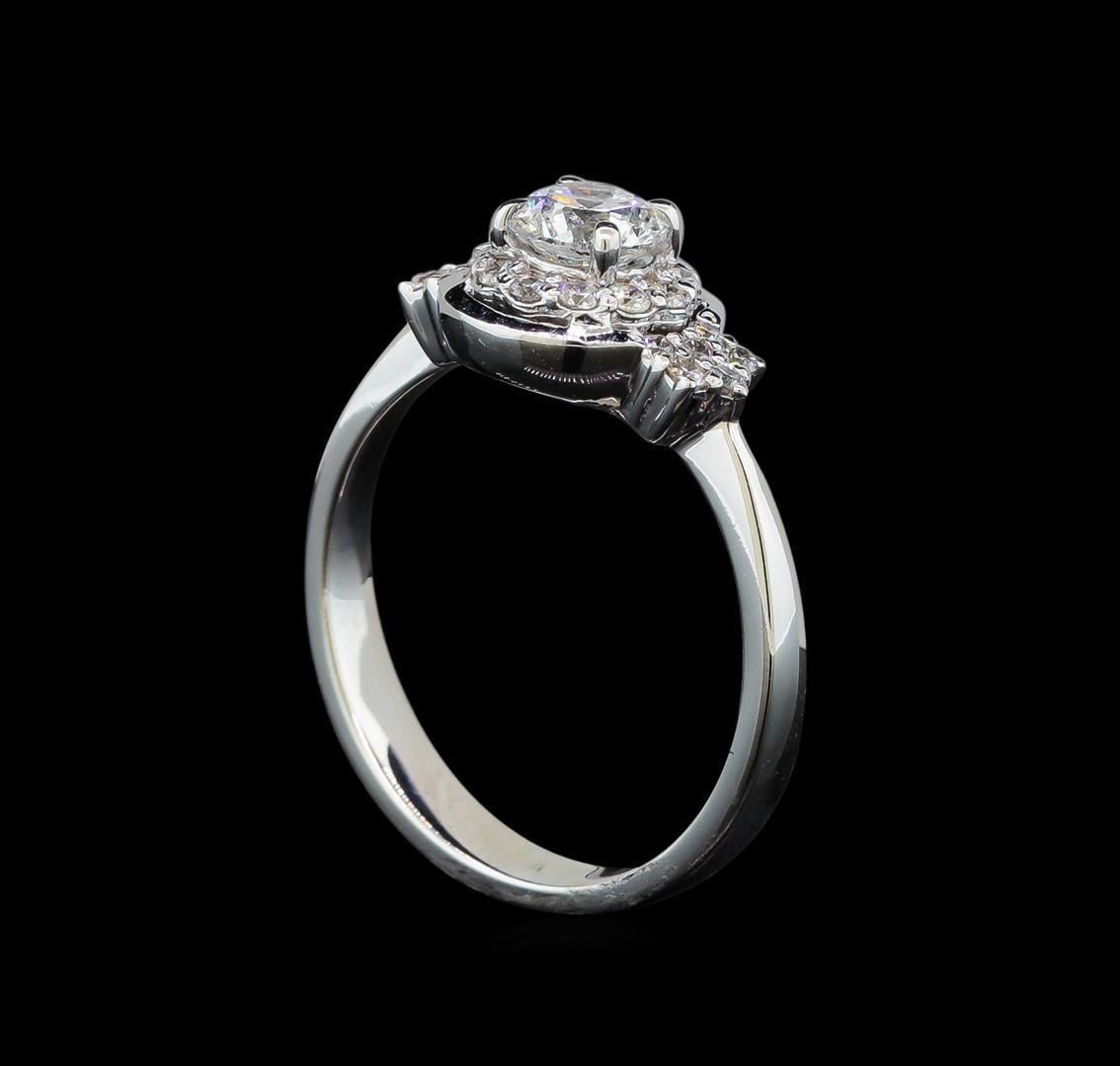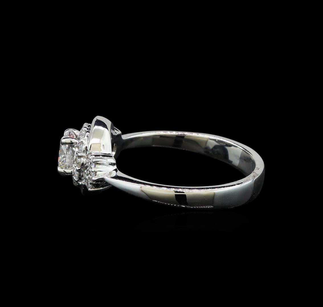 One electronically tested 14KT white gold lady's combination cast & assembled wedding ring with a bright polish finish. The featured lady's ring has a shank measuring 3.13 millimeters wide. Identified with markings of '14K'. Condition is new, good workmanship. Containing: One prong set round brilliant cut diamond, measuring 5.06 - 5.04 x 3.18mm (depth est.) approximate weight of 0.53ct. Graded in the setting. Clarity SI-3. Color: H Cut Good Twenty-Four prong set round brilliant cut diamonds, measuring 1.40 - 1.35 x 0.86mm (depth est.) approximate total weight of 24 Stones = 0.24ct. Graded in the setting. Clarity SI-1 to I-1. Color: G - I Cut Good. Total Weight of Diamonds 0.77ct.. Total Weight of Ring 3.30gm. GAS Appraised.