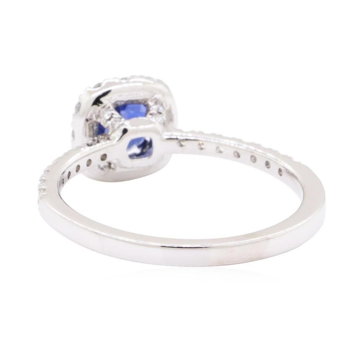One lady's ring featuring: 14KT white gold weighing 2.3 grams containing one sapphire weighing 0.77ct and diamonds weighing 0.25ctw.