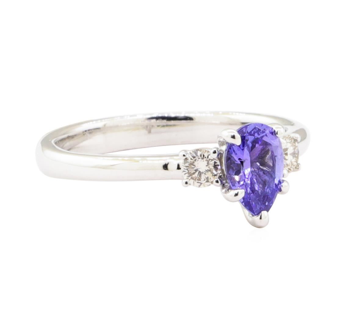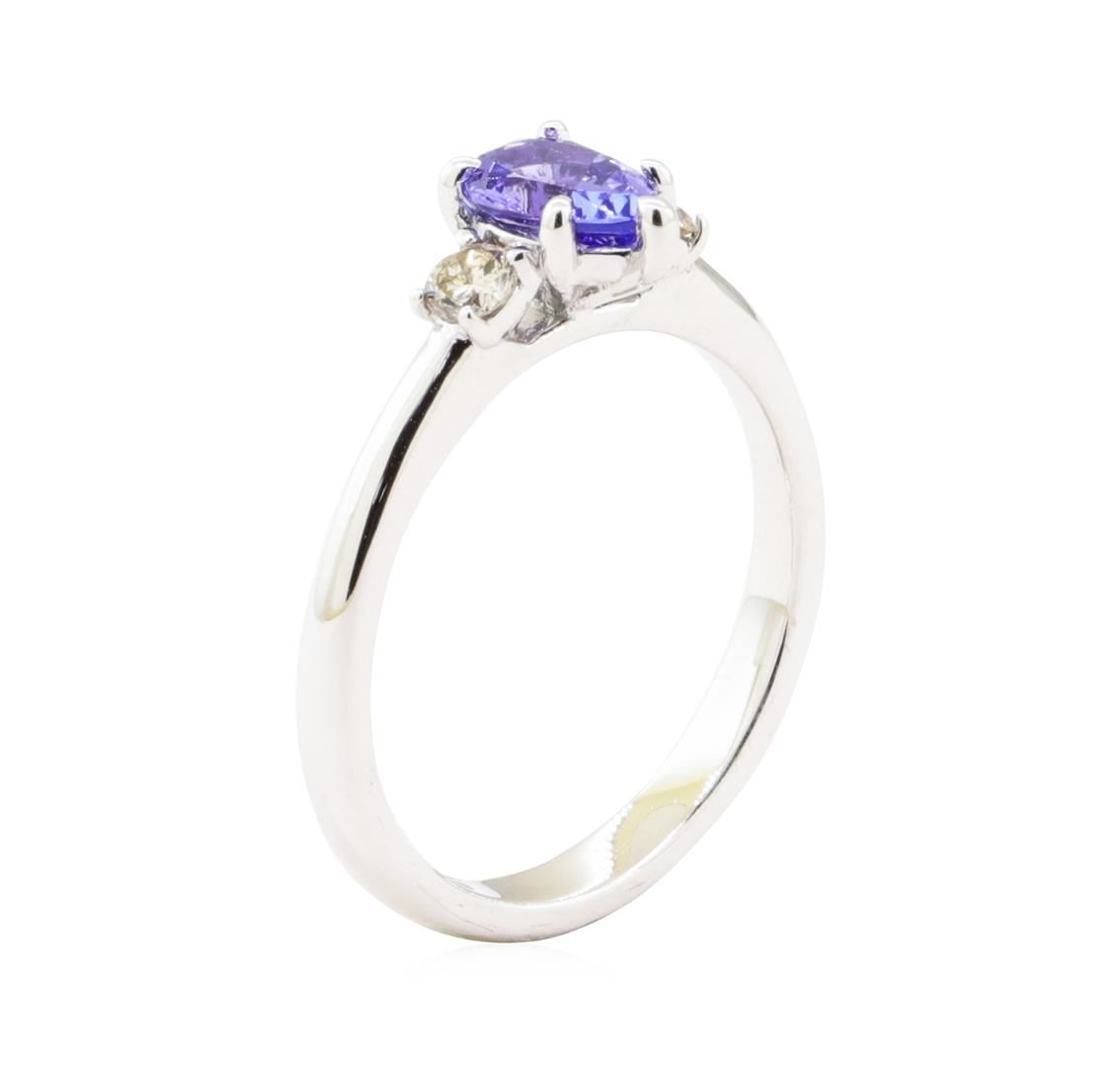 One ring featuring: 14KT white gold weighing 3.2 grams containing one tanzanite weighing 0.65ct and diamonds weighing 0.14ctw.