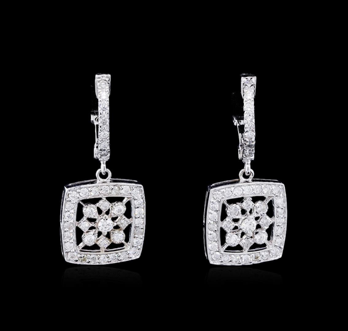 One pair of earrings featuring: 14KT white gold weighing 5.06 grams containing diamonds with a total weight of 0.81ct.