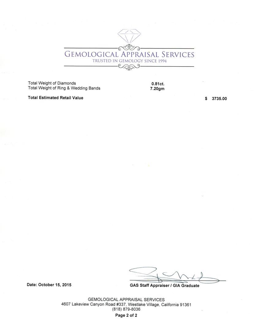 Regarding Appraised Jewelry, Watches and Loose Stones –