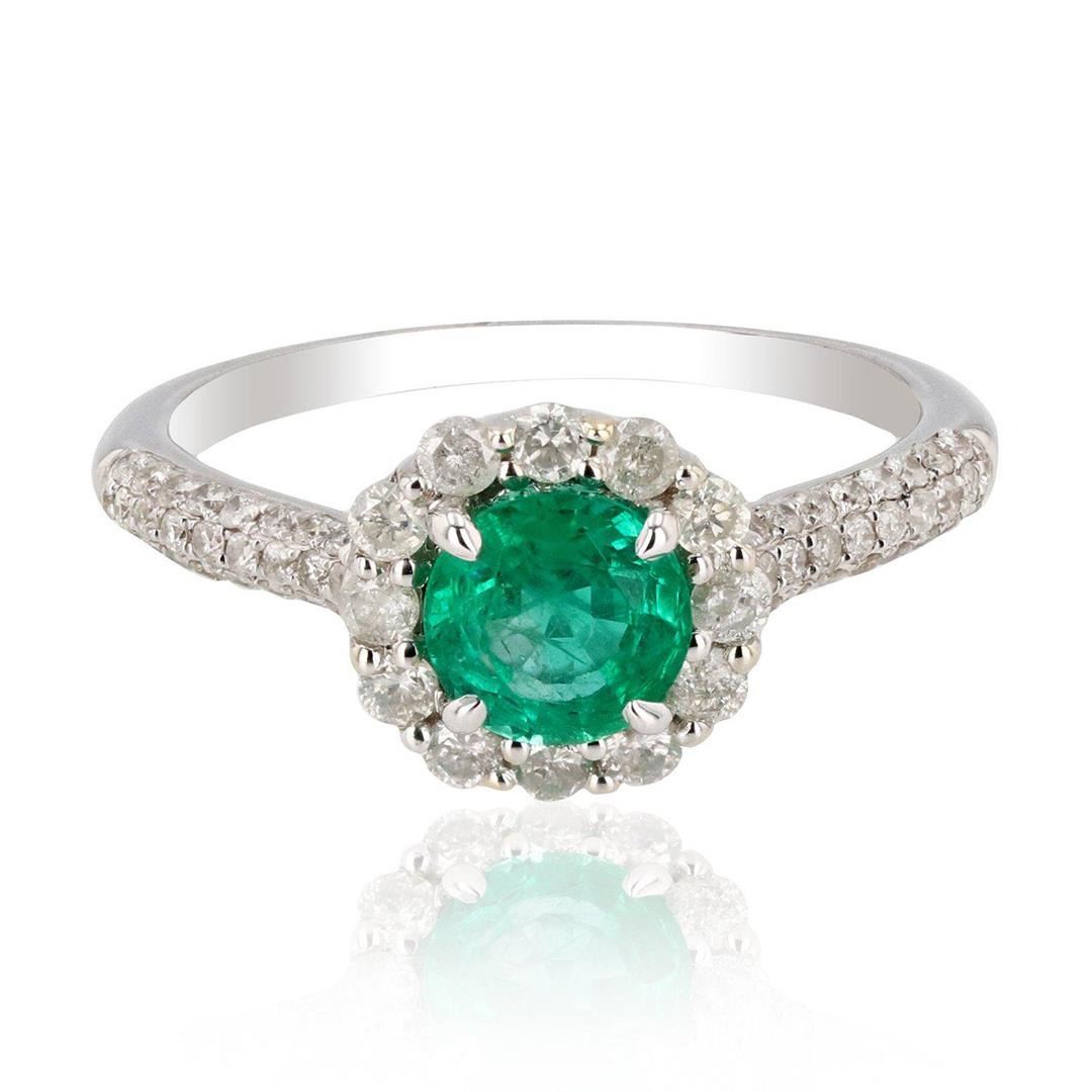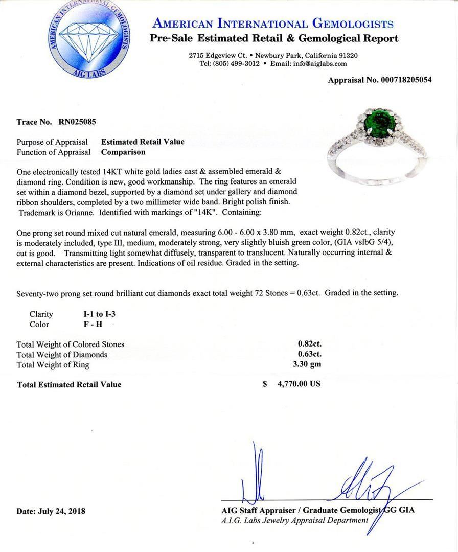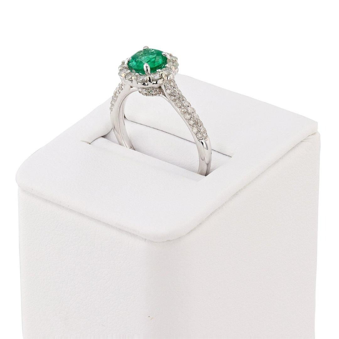 0.82 ctw Emerald and 0.63 ctw Diamond 14K White Gold Ring