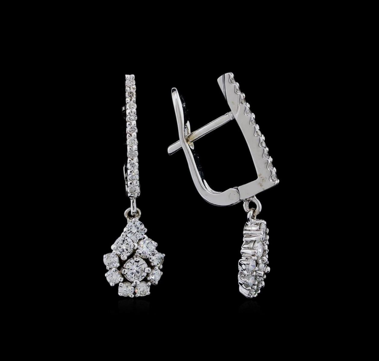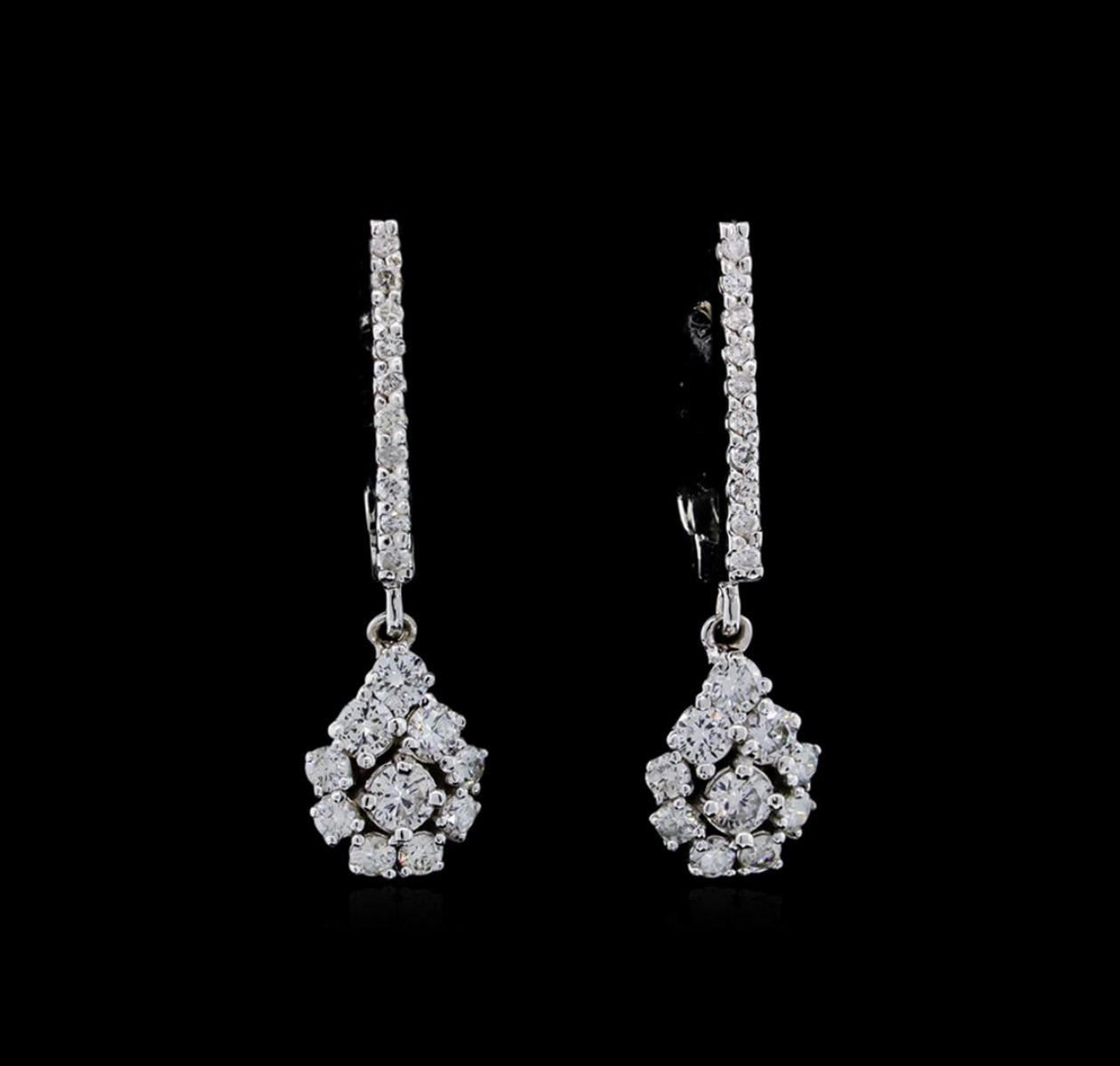 One pair of earrings featuring: 14KT white gold weighing 3.30 grams containing 8 diamonds with a total weight of 0.44ct and side diamonds with a total weight of 0.41ct.