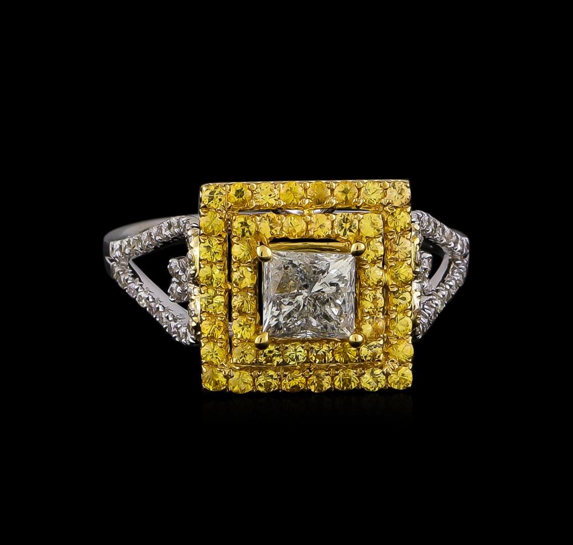 0.85 ctw Diamond and Yellow Sapphire Ring - 14KT Yellow Gold