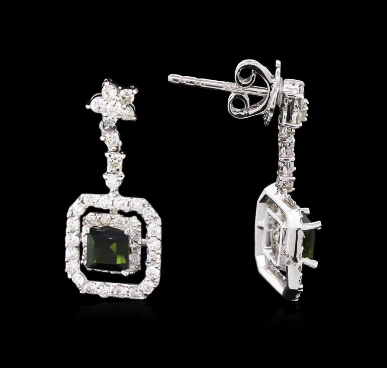 One pair of earrings featuring: 14KT white gold weighing 3.23 grams containing 2 green tourmaline with a total weight of 0.85ct and diamonds with a total weight of 0.83ct.