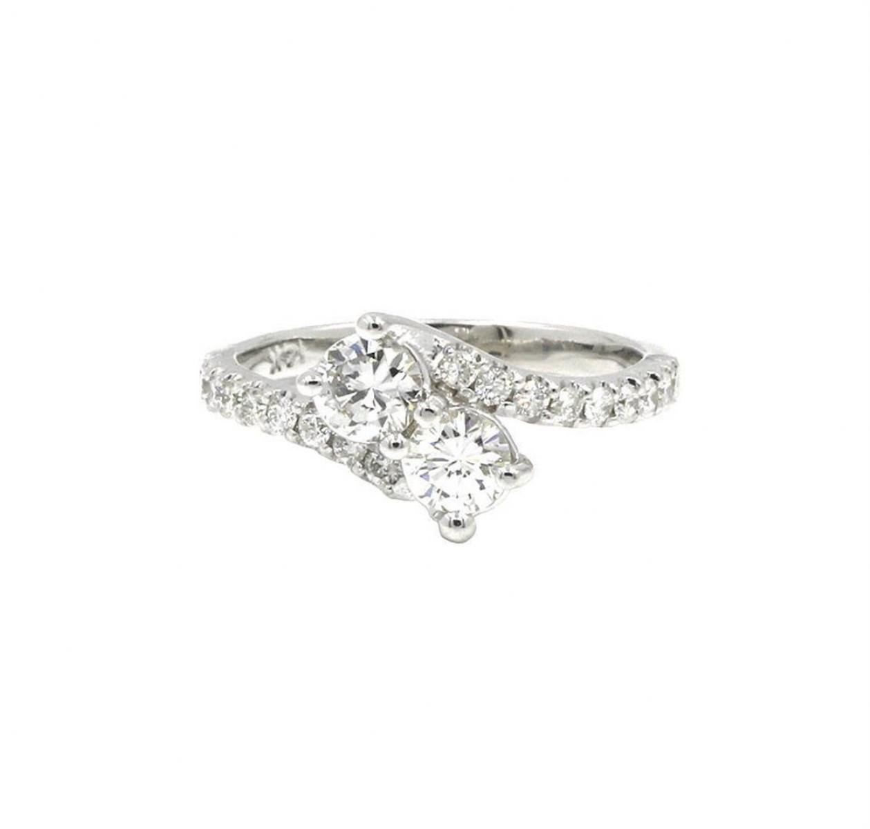 One lady's ring featuring: 14KT white gold weighing 3.92 grams containing one center diamond weighing 0.27ct and side diamond weighing 0.61ctw. The center diamond is round brilliant cut with VS1 and color G-H. The side diamonds are round brilliant cut with SI1 clarity, G color and very good cut. The ring is a size 6.5 but can be resized.