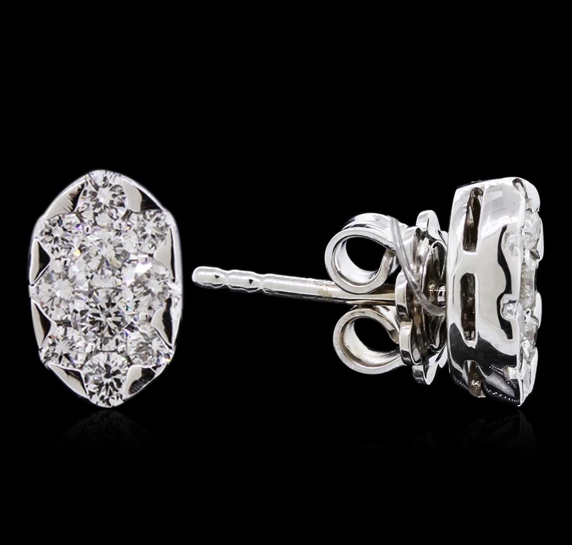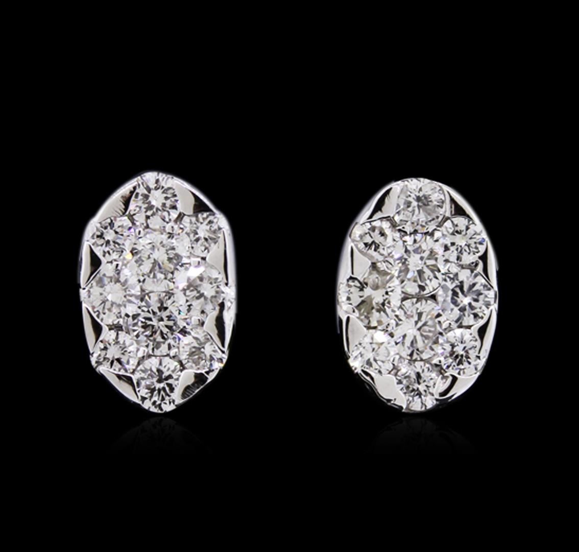 One pair of earrings featuring: 14KT white gold weighing 3.00 grams containing diamonds with a total weight of 0.90ct.