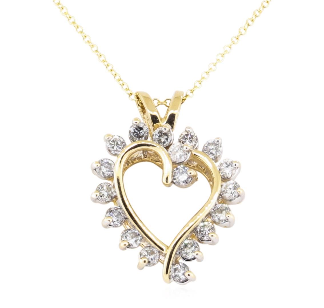 One pendant with an attached 1mm rounded cable link chain measuring sixteen inches in length featuring: 14KT yellow gold weighing 5.4 grams containing diamonds weighing 0.90ctw.