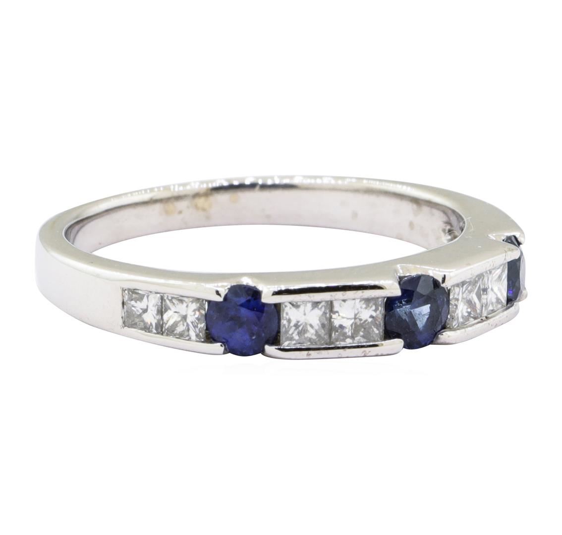 One ring featuring: 14KT white gold weighing 3.3 grams containing princess cut diamonds weighing 0.50ctw and sapphires weighing 0.40ctw.