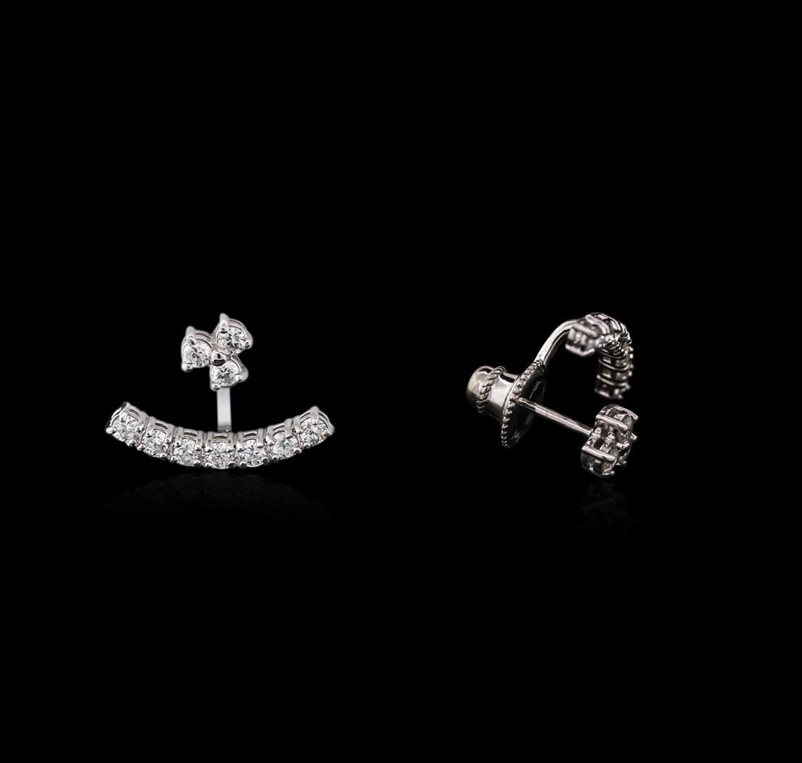 One pair of earrings featuring: 14KT white gold weighing 4.40 grams containing 20 diamonds with a total weight of 0.91ct.