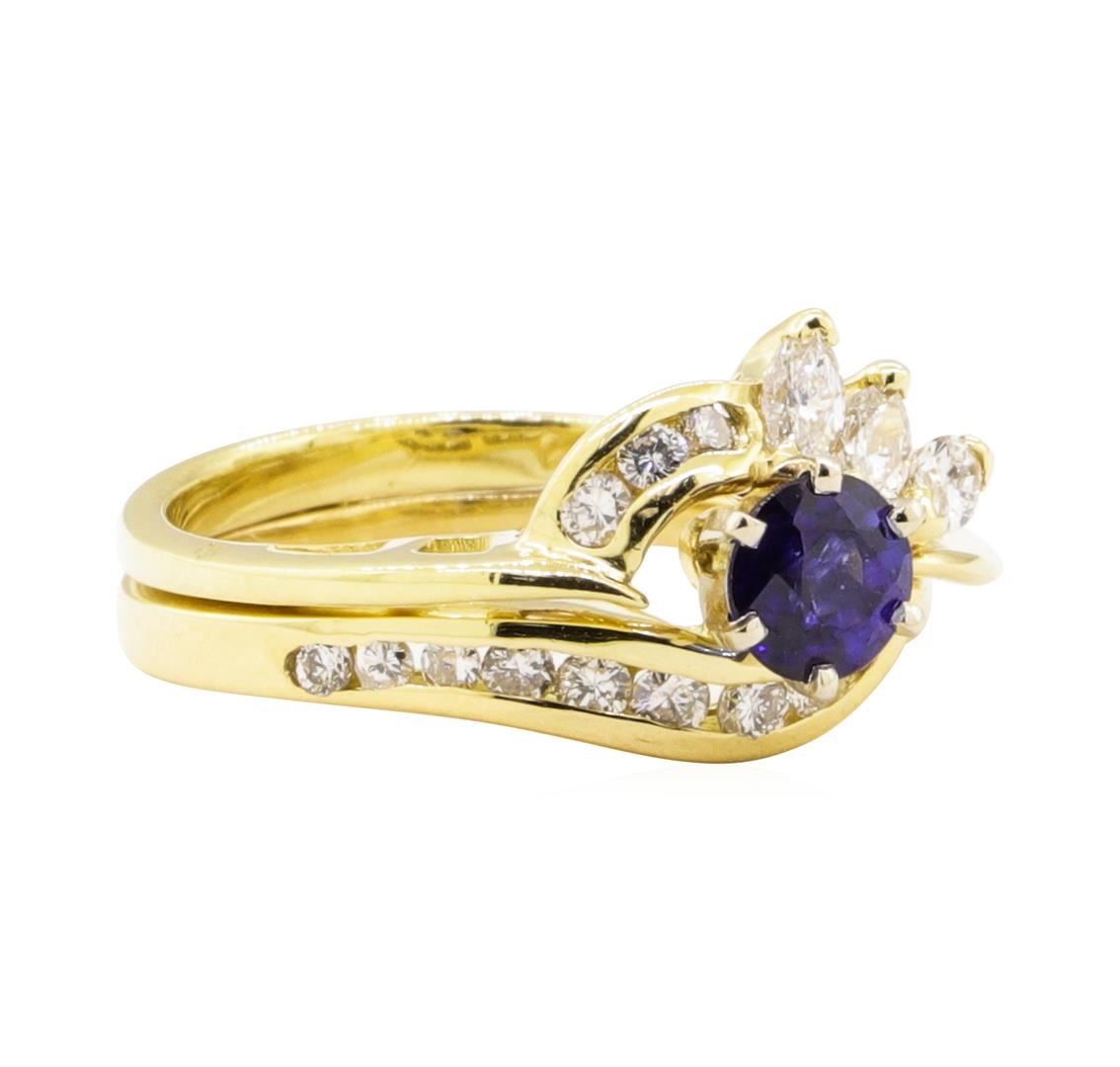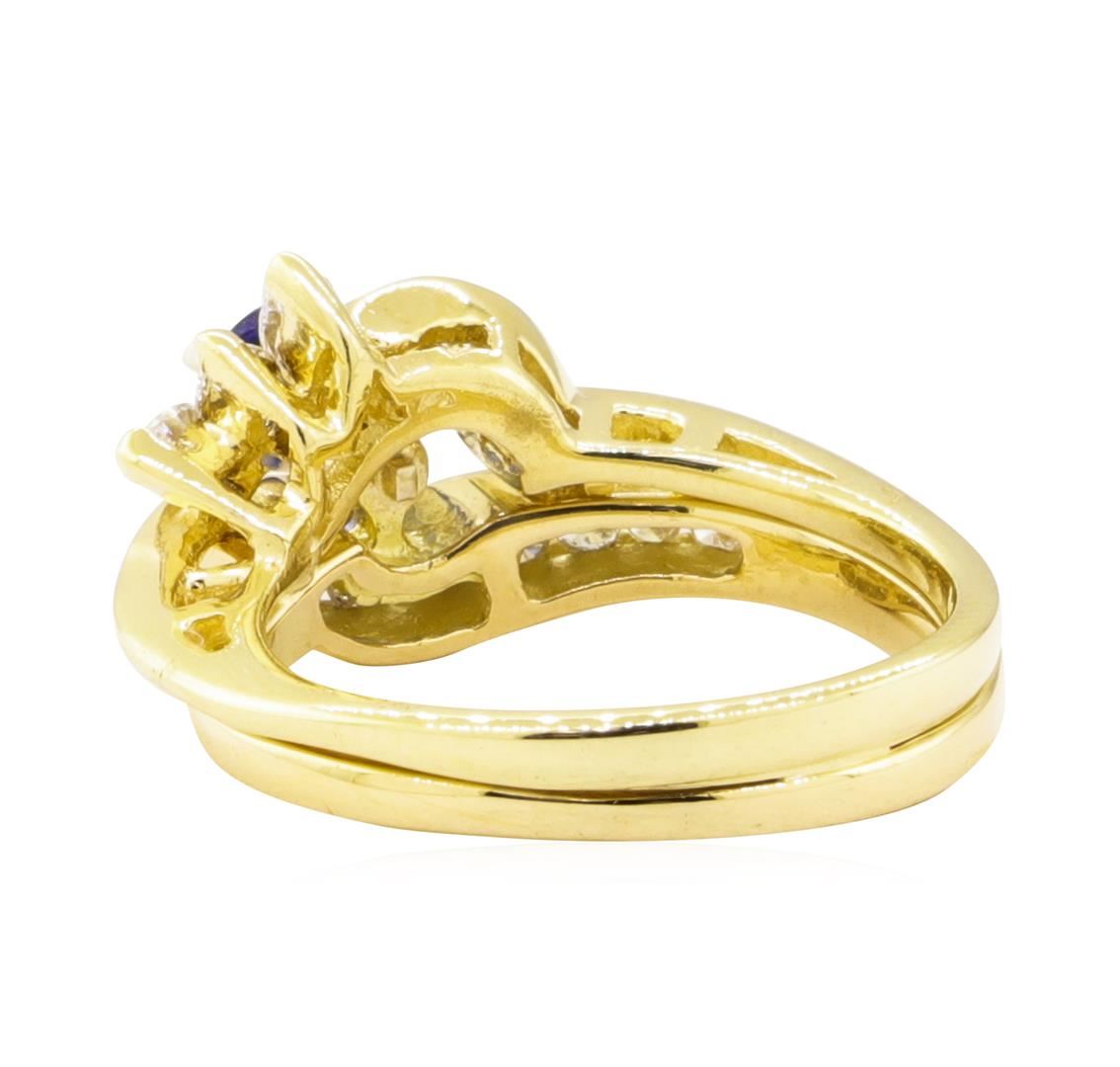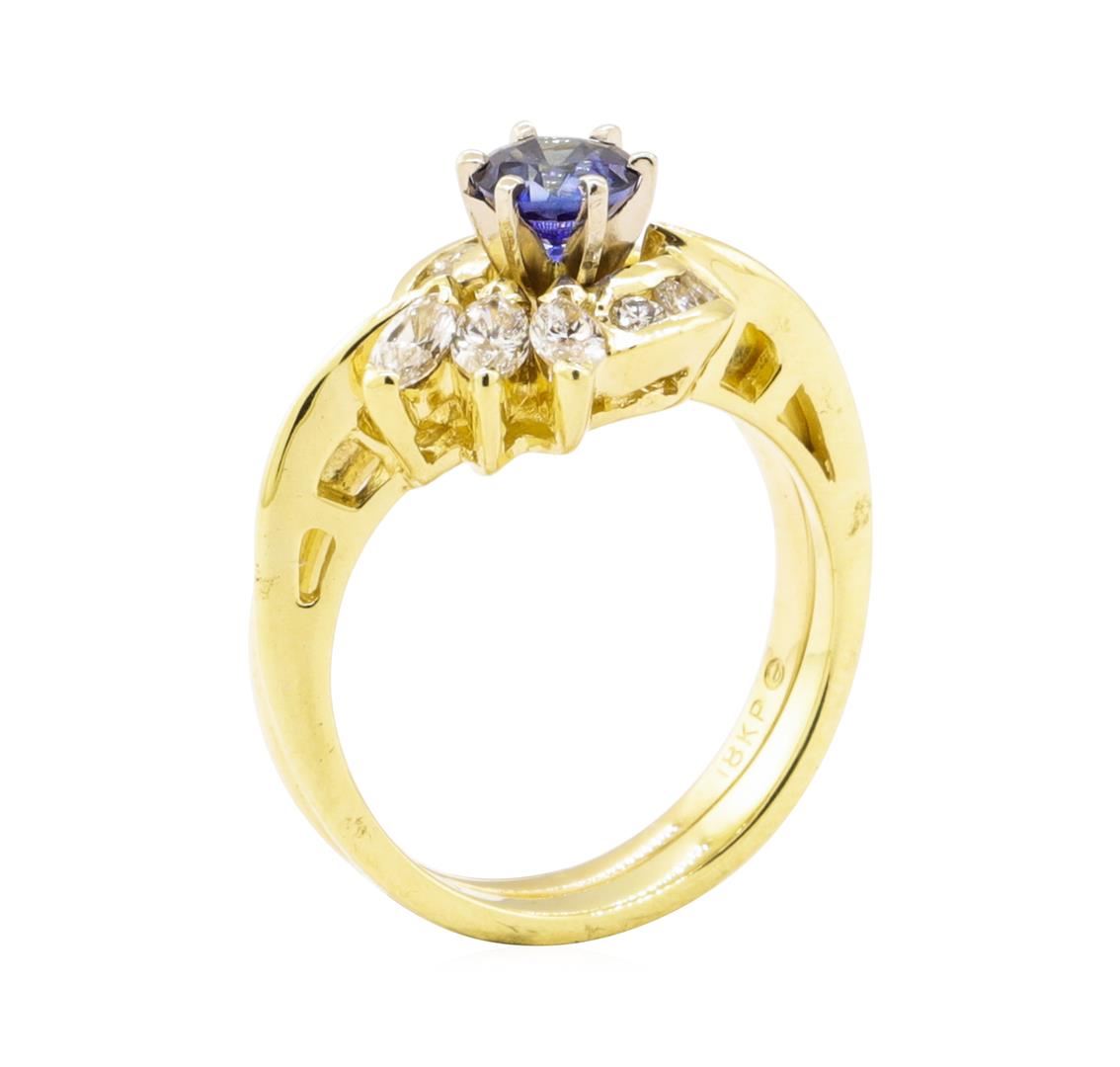 0.92 ctw Blue Sapphire and Diamond Ring - 18KT Yellow Gold