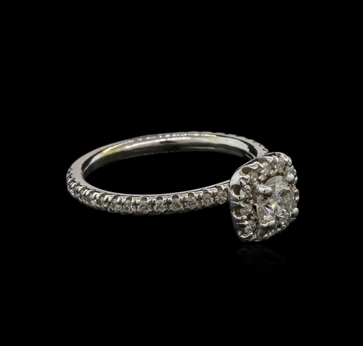 One electronically tested 14KT white gold lady's combination cast & assembled engagement ring with a bright polish finish. The featured ring has a 1.95 millimeter wide shank. Condition is new, good workmanship. Containing: One prong set round brilliant cut diamond, measuring 4.94 - 4.92 x 3.20mm (depth est.) , 5.00.%. GTCF approximate weight of 0.50 ct. Naturally occurring internal & external characteristics are present. Graded in the setting. Clarity: I-1. Color: Very Good Forty-Two split prong set round brilliant cut diamonds, measuring 1.40 - 1.35 x 0.87mm (depth est.) approximate. Total Weight of 42 Stones = 0.42ct. Graded in the setting. Clarity: SI-1 to I-1. Color: G - I. Cut Good. Total Weight of Diamonds 0.92ct. Total Weight of Ring 3.00gm. GAS Appraised.