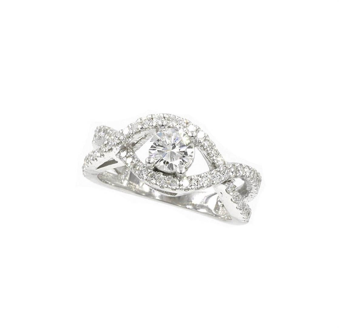 One lady's ring featuring: 14KT white gold weighing 3.68 grams containing one center diamond weighing 0.46ct and 50 side diamonds weighing 0.48ctw. The center diamond is round brilliant cut with SI1 clarity, H-I color and very good cut. The side diamonds are round brilliant cut with SI1 clarity, H-I color and very good cut. The ring is a size 5 but can be resized.